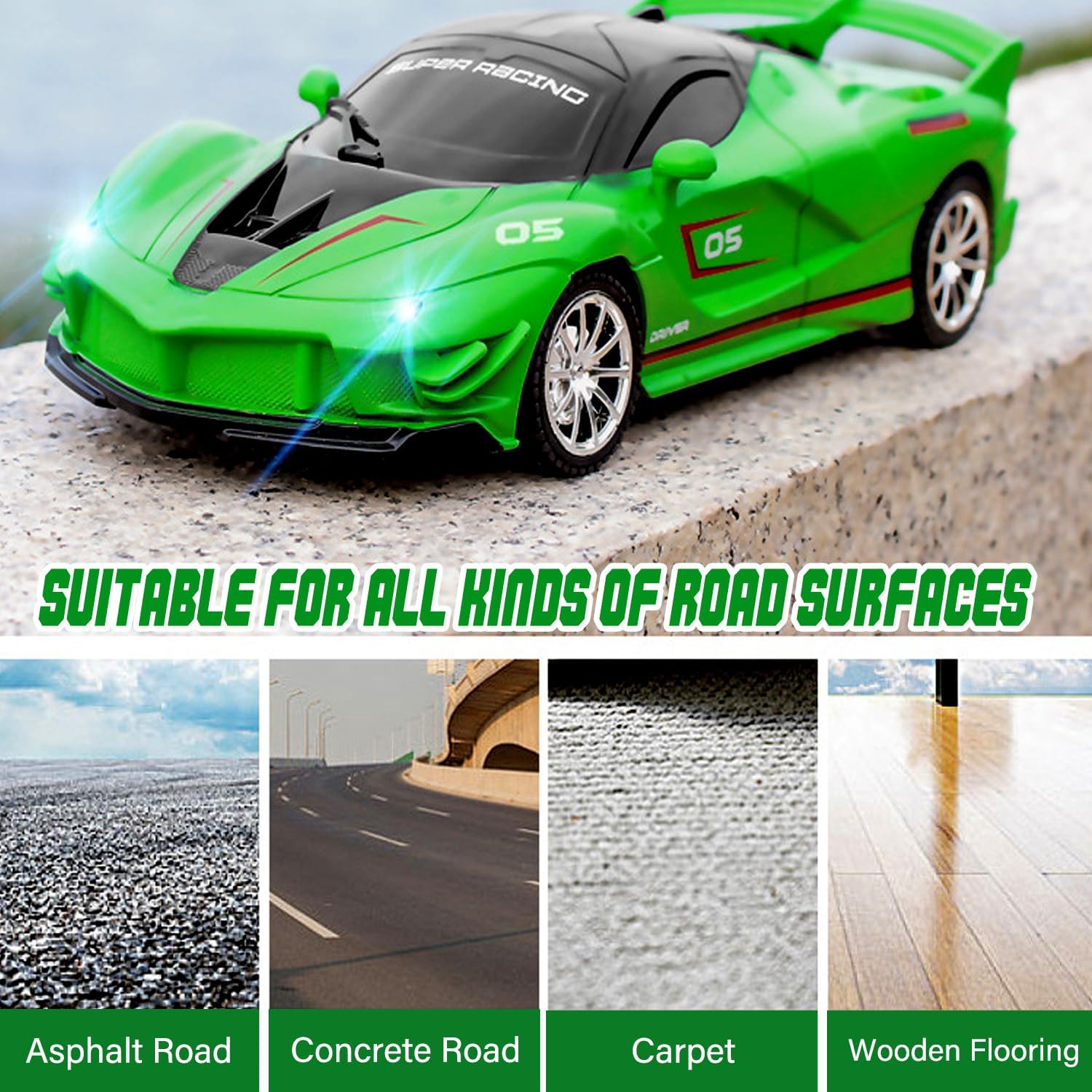 - Remote Control Car for Boys 6+ Year: This 1/18 Scale green Rc car size is 8.7 x 3.6 x 2 inch for Indoor and outdoor toys use. The New Upgraded Rechargeable sports car includes - Remote control Car*1, remote control*1, Car rechargeable battery*1, charged using standard USB*1, and Screwdriver *1. The perfect and complete electric car configuration are wonderful gifts for boy and gril.