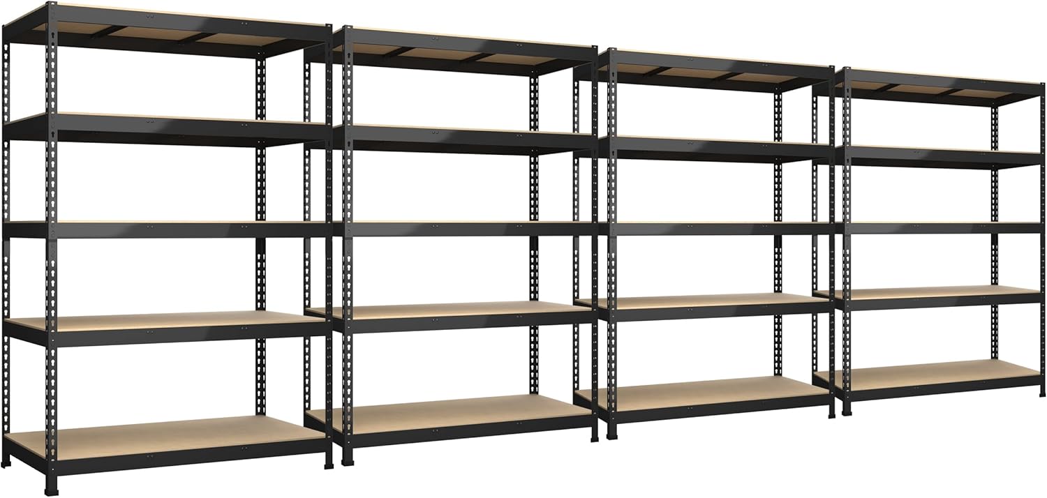 4 Packs 48" W x 24" D x 72" H Adjustable Garage Storage Shelves - 5-Shelf Heavy Duty Shelving Unit, Metal Utility Storage Organizer Racks for Warehouse Pantry Closet Kitchen, Black