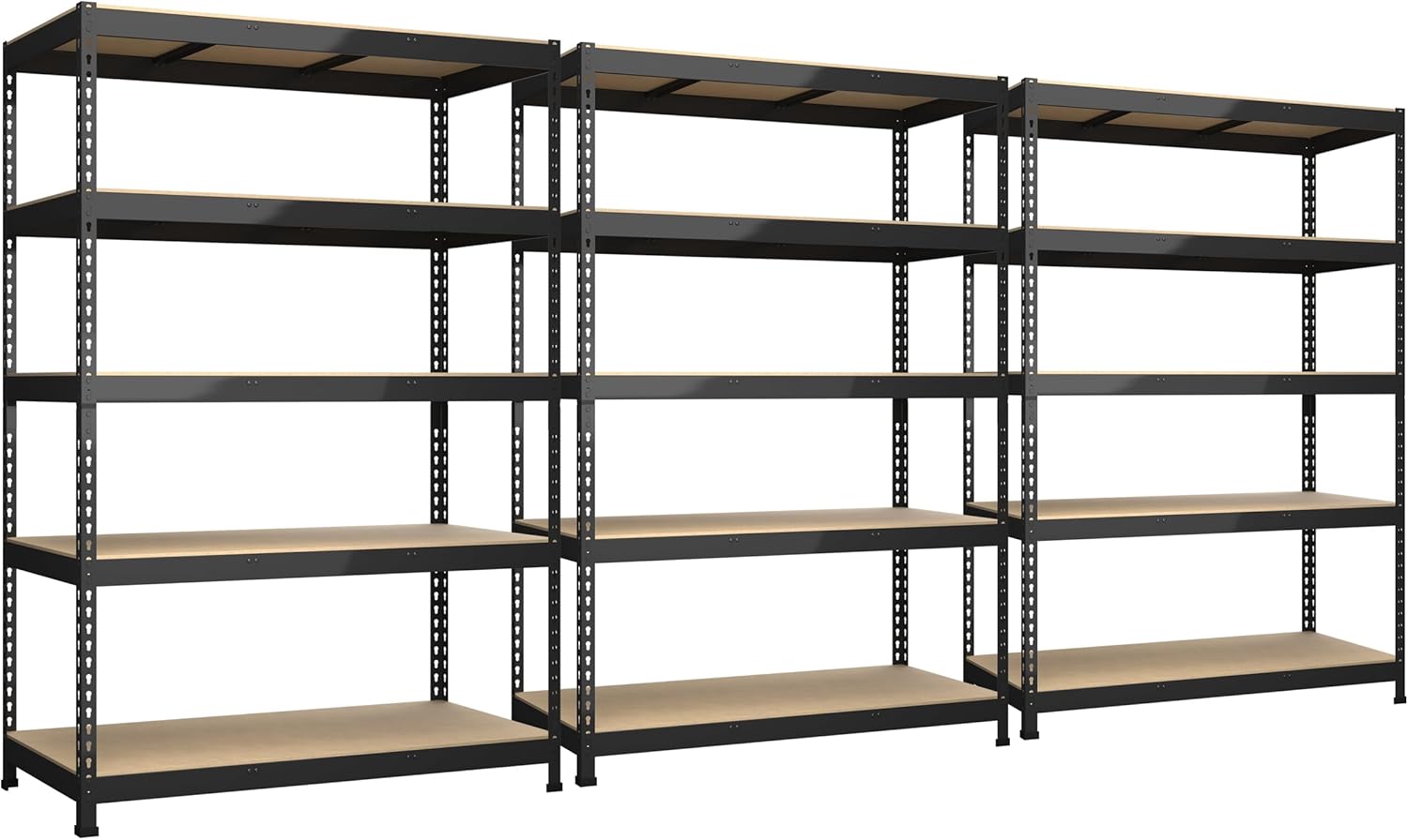 - - Built to Hold More: Featuring a heavy-duty metal frame and premium MDF boards, BuxWellBang garage storage shelves Max. load capacity is 600 lbs per layer shelf (evenly distributed) without buckling or breaking, 5 tier shelves' total max load capacity is 3000 lbs. The rock-solid construction of storage shelf ensures greater strength, longevity, and stability—a storage rack you can trust for the long haul