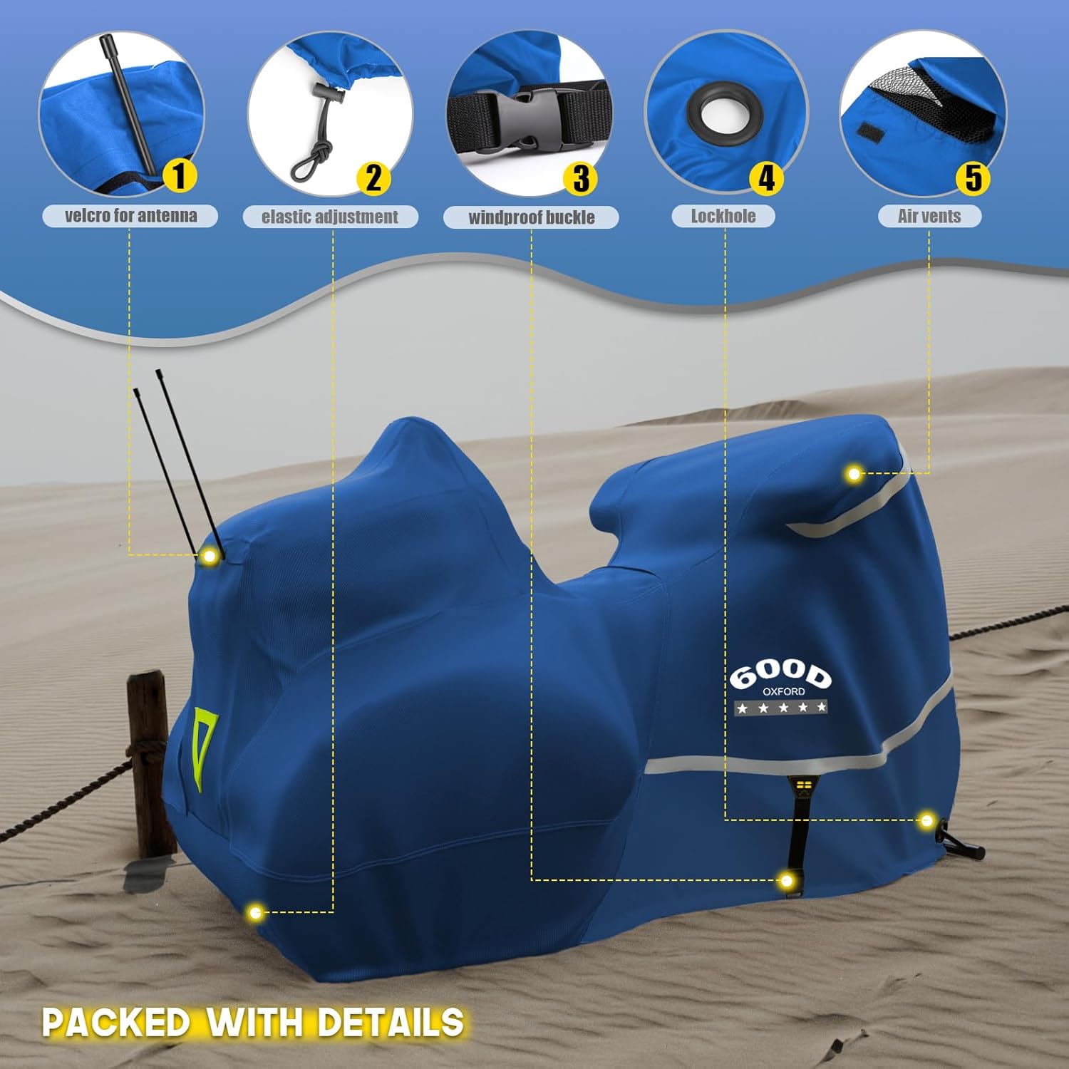 - 🛵【100% 600D Oxford cloth】: The trike cover, weighing 9.5lb, is almost thicker and solider than those on the market. The fabric is resistant to aging and ripping, and UV proof, dustproof and rainproof.