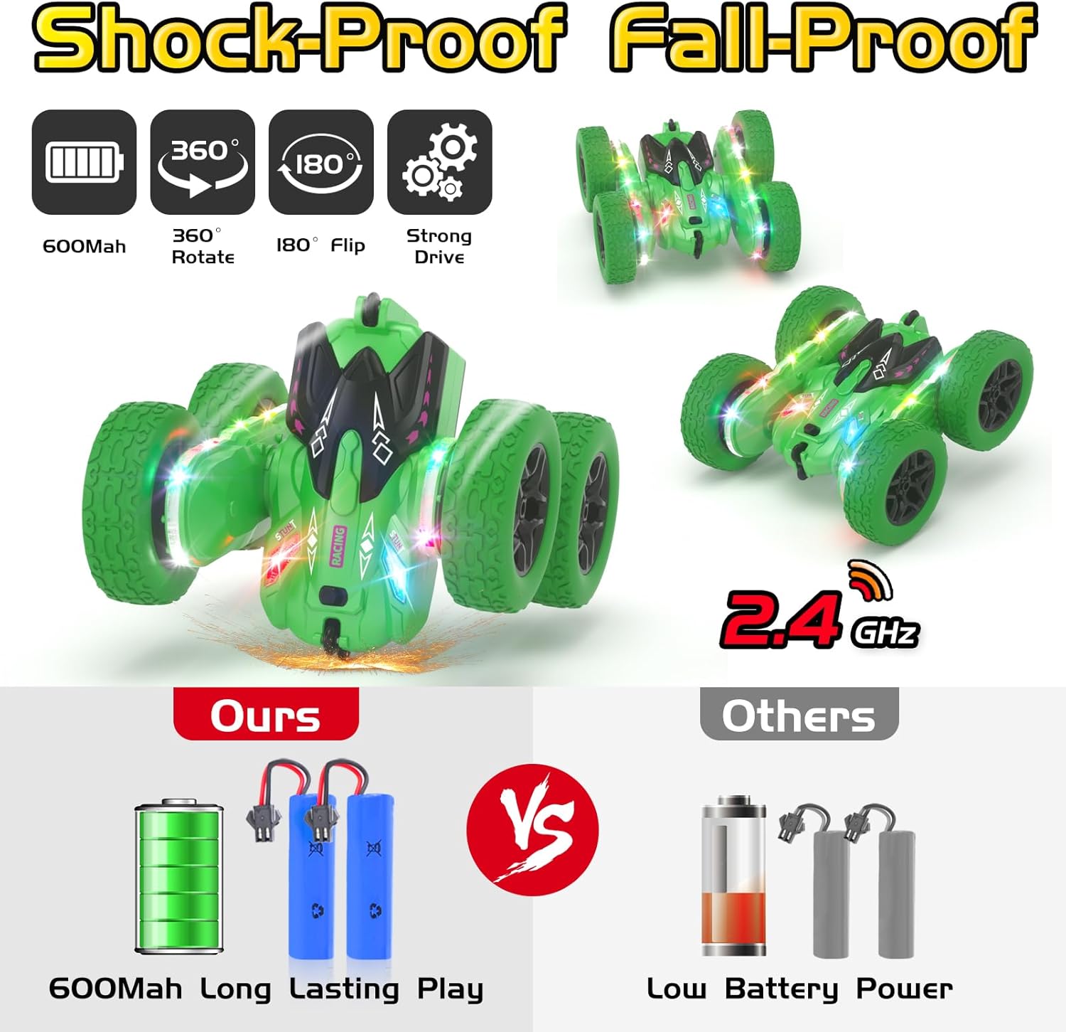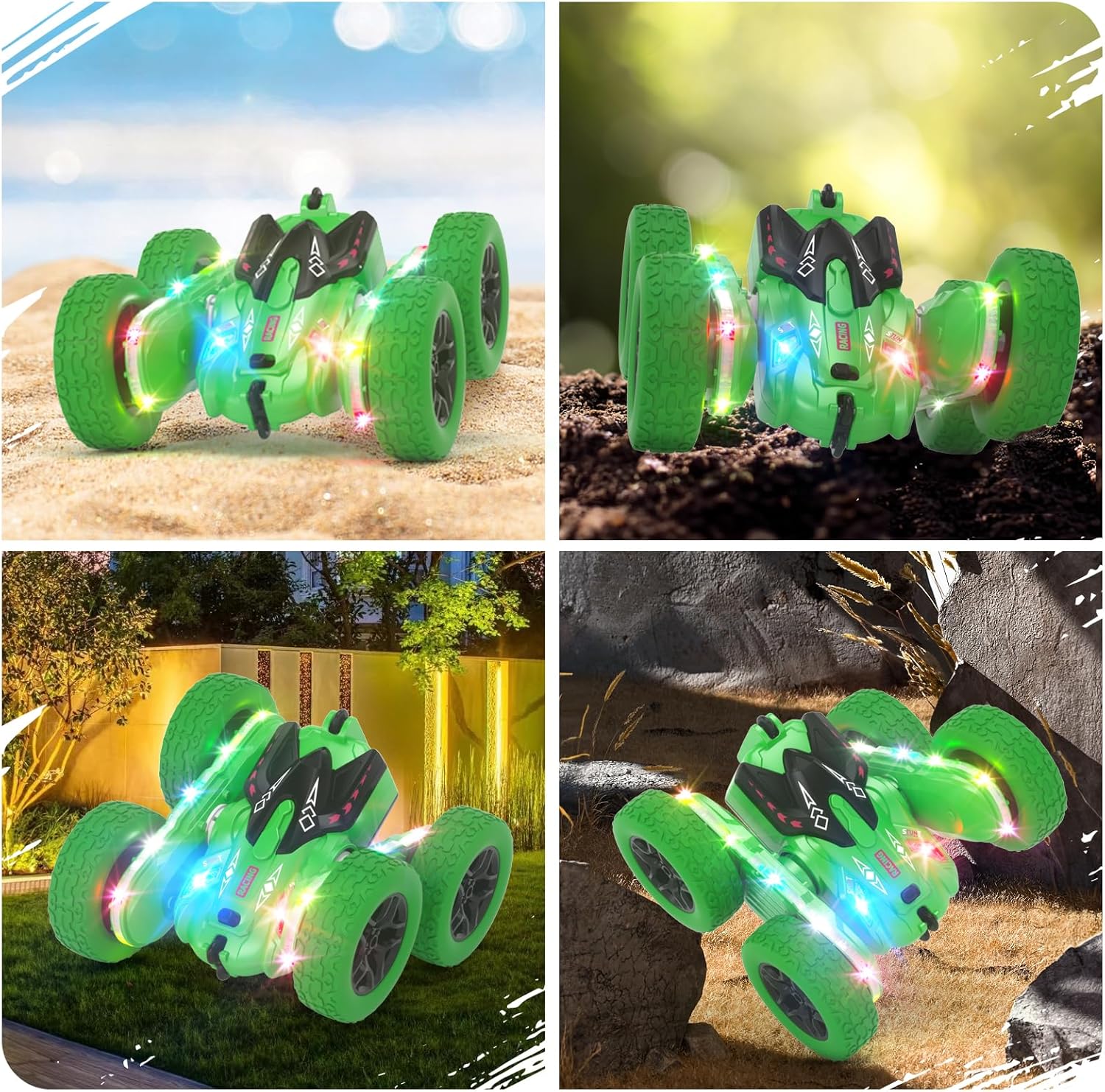 - [Unique Remote Control Stunt Car] The remote control stunt car is not only equipped with headlights but also upgraded Strip lights, so that the performance effect of the stunt car stands out from other ordinary stunt cars, attracting children's fun to play, for which it will also be deeply liked by boys toys aged 6-12.