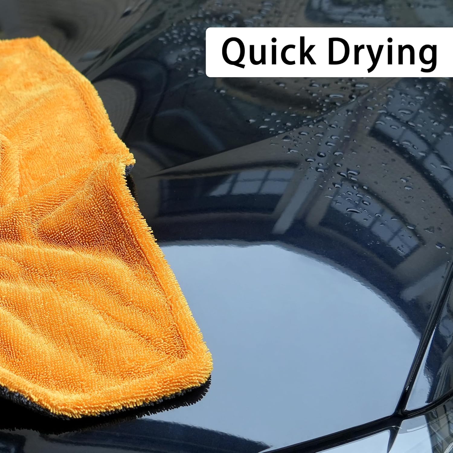 - SUPER ABSORBENT - The unique double-twist pile construction absorbs more water on the first pass, with less friction and drag than other towels. Drying your vehicle even quicker with just one swipe