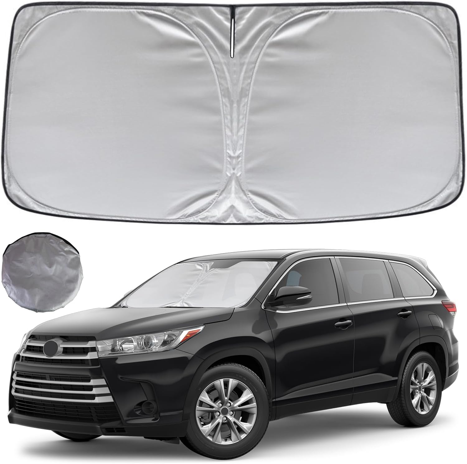 - KAYZT windshield sun shade is precise custom fit for 2014 2015 2016 2017 2018 2019 Toyota Highlander, Thoroughly covers every corner of the windshield, Tailored to accommodate rear view mirror, Ensuring a seamless and snug fit without obstruction, Must have car accessories for Highlander