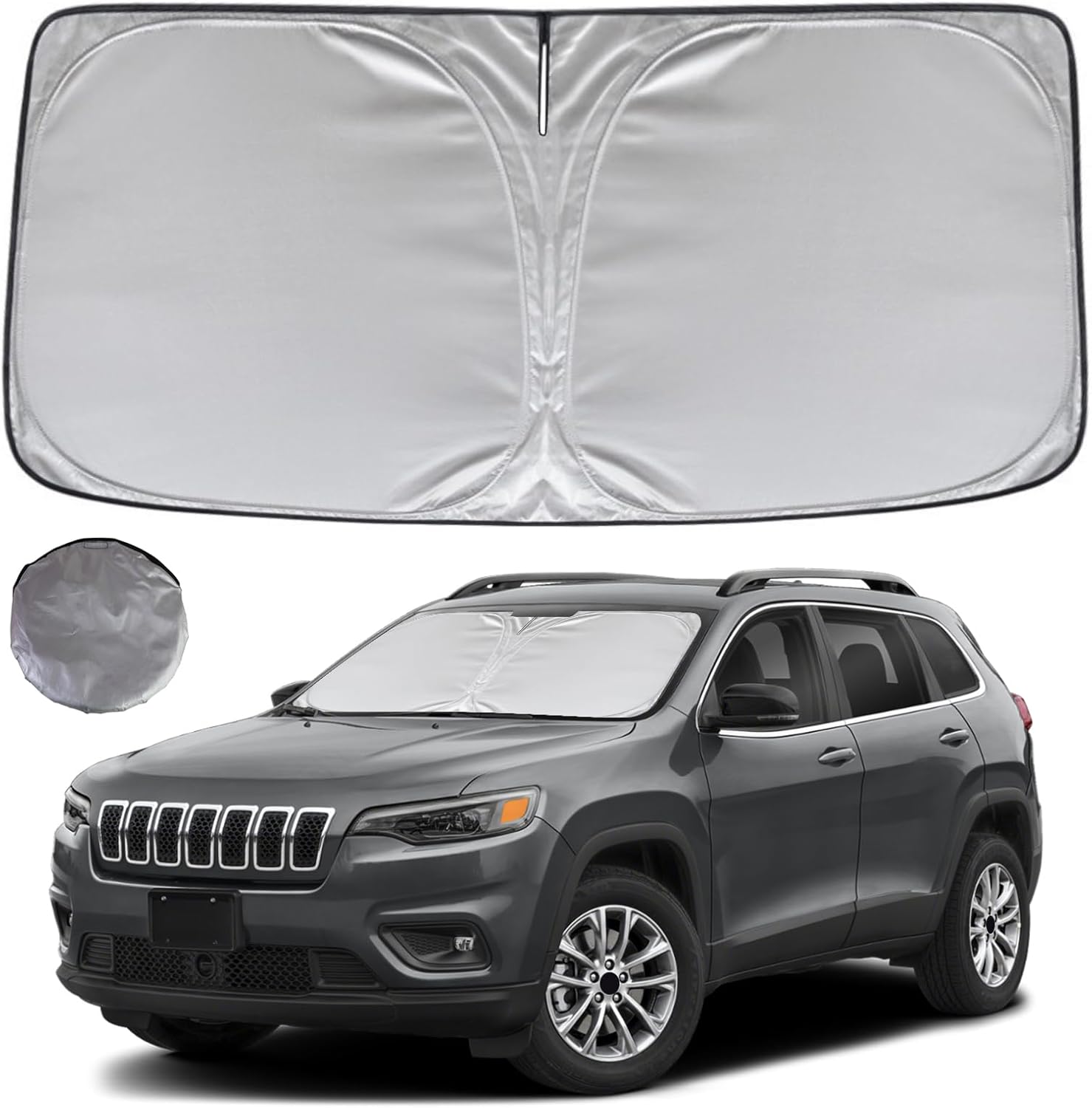 KAYZT Windshield Sun Shade for 2014-2023 Jeep Cherokee (Not for Jeep Grand Cherokee) SUV Foldable Sunshade Front Window Custom Fit Car Accessories