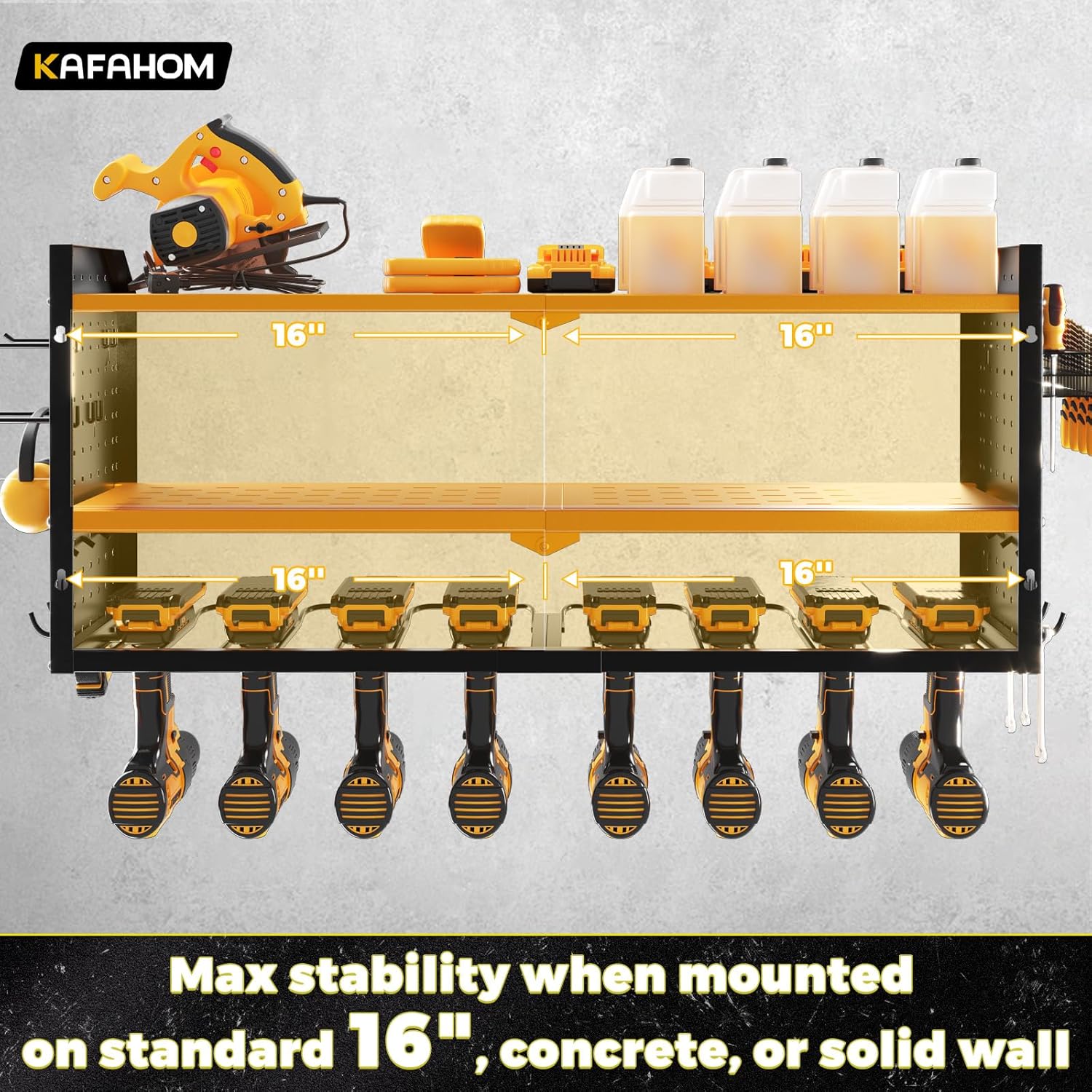 - Robust Construction: Built to last, KAFAHOM tool box organizers and storage wall mount features a sturdy alloy frame and reinforced double-layered metal plates for exceptional load-bearing capacity. It's the ideal utility cordless drill holder for a wide range of tools and accessories.