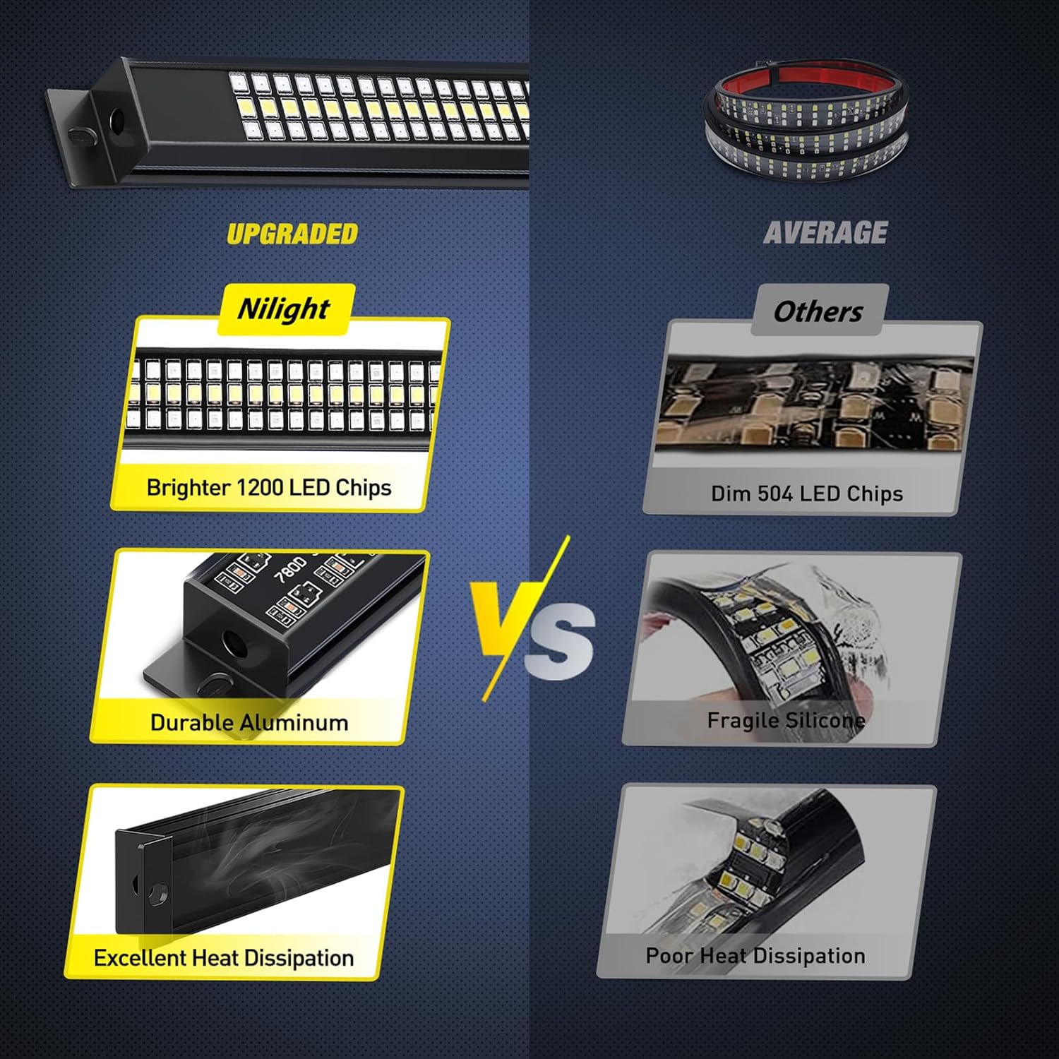 Nilight Truck Tailgate Light Strip 60" Aluminum FrameTriple Row Light Bar 1200 LED w/ Red Running Brake White Reverse Light Red Sequential Turn Signal