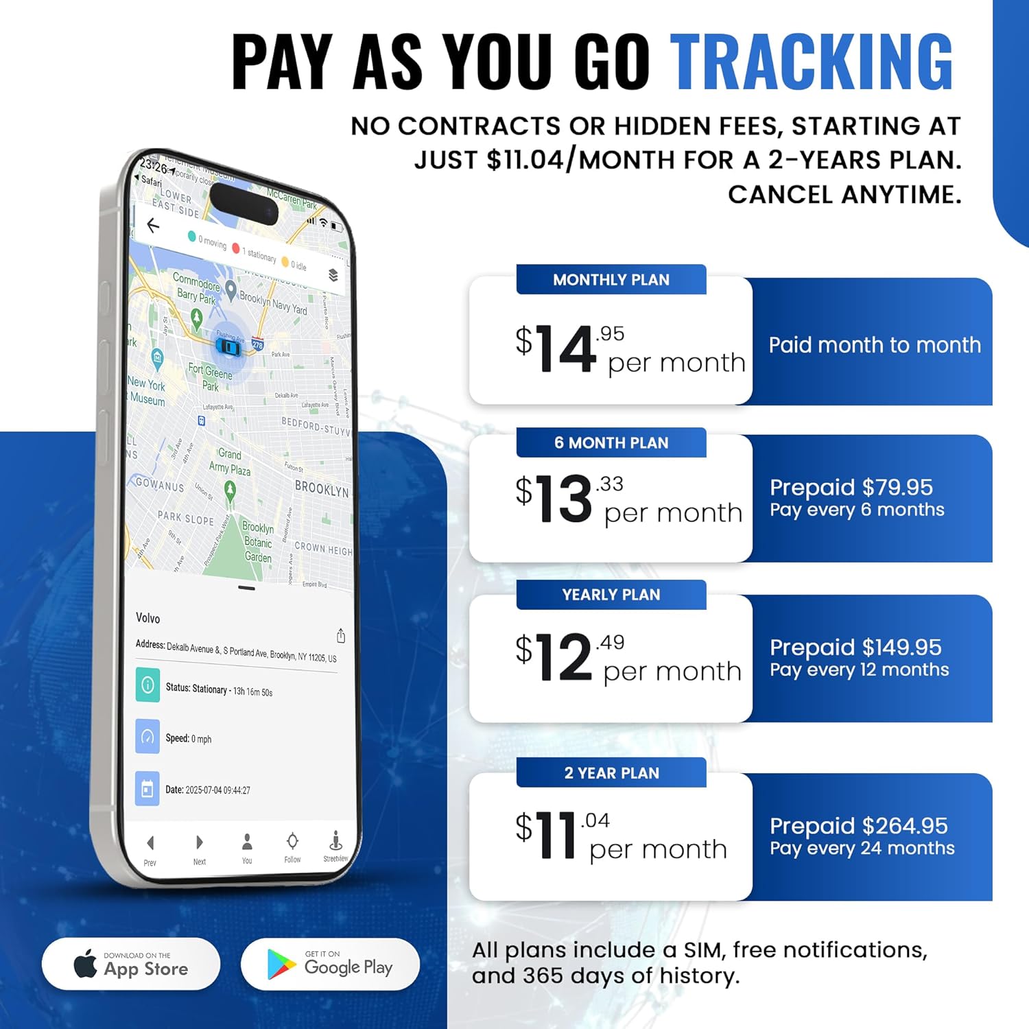 - EASY TO INSTALL MAGNETIC GPS TRACKER: Tool-free setup on any metal surface attaches this vehicle tracker in seconds, then access 24/7 live GPS tracker data via our smartphone app or desktop site.