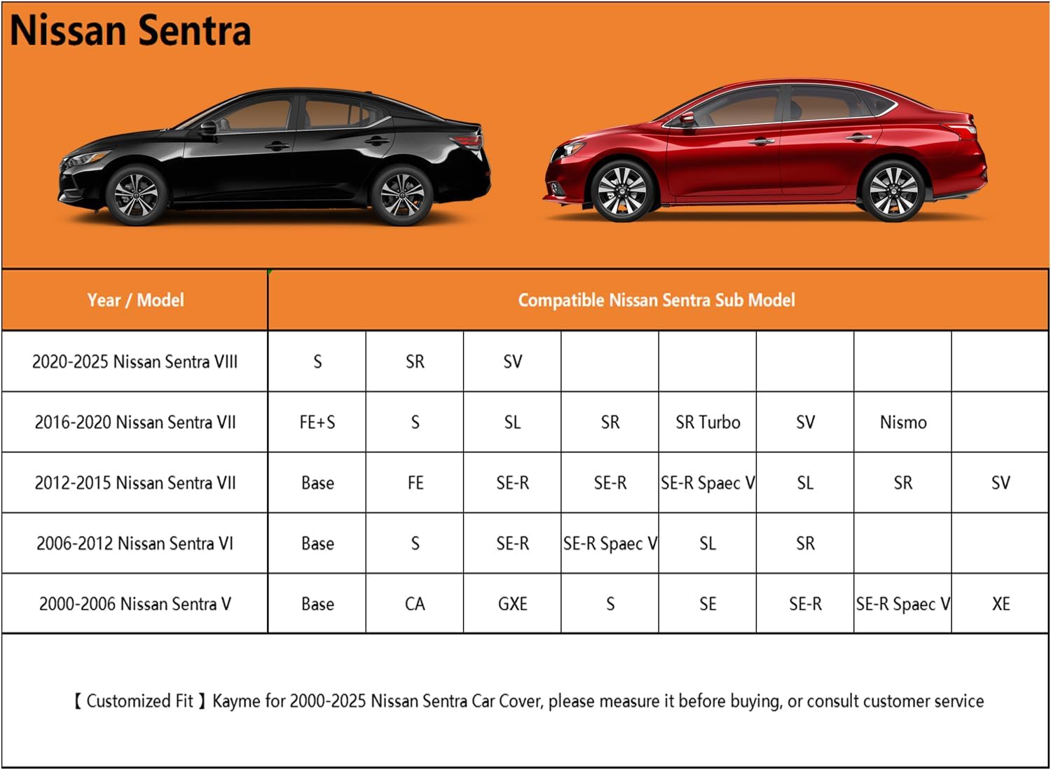 - ăSuitable forăâ Custom fit for Nissan Sentra (2000-2025). Come with a large enough portable bag to store your cover when you do not use