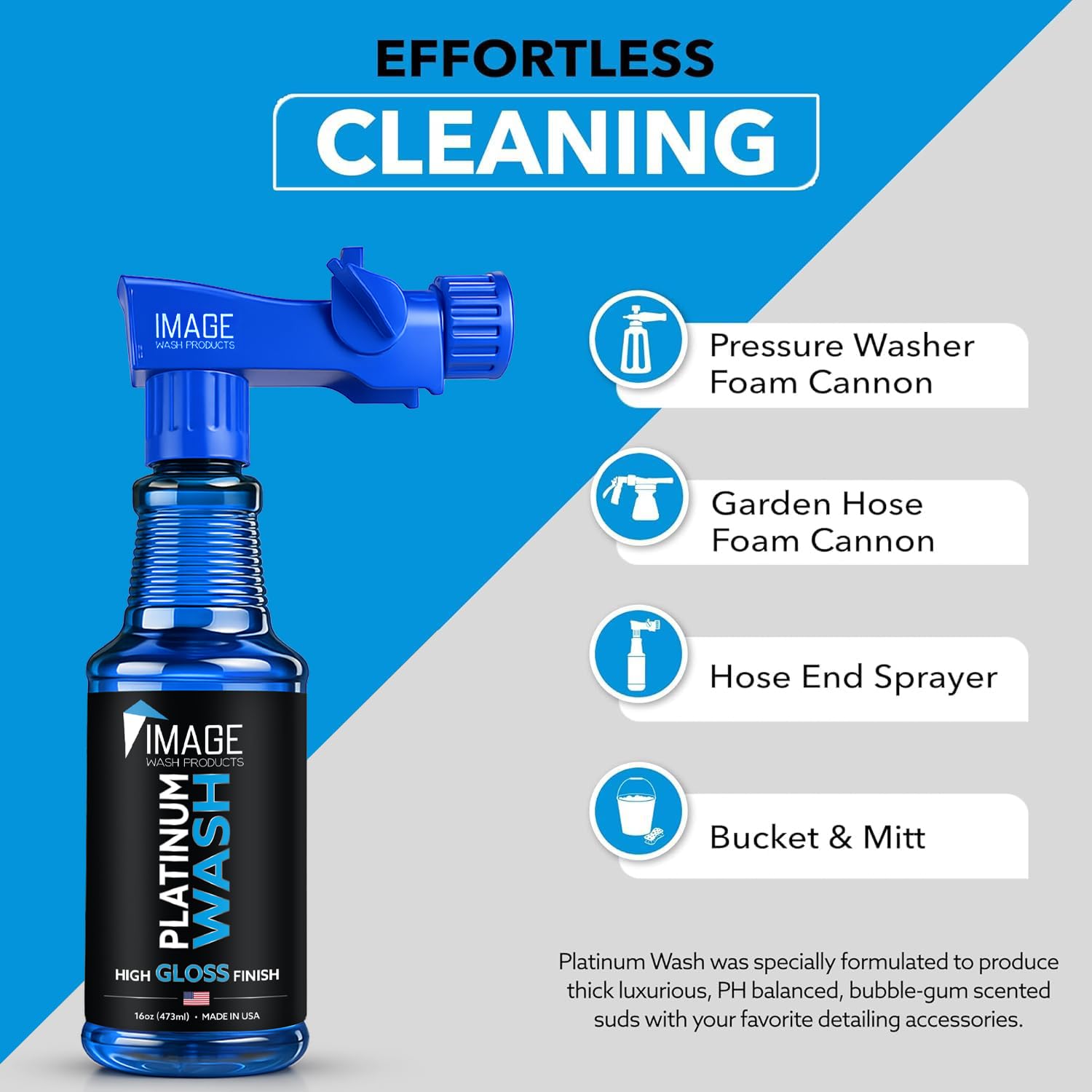 Image Wash Products - 16oz Platinum Wash Car Soap – Car Wash Foam Soap for Foam Cannon & Pressure Washer | High Gloss RV/Truck Wash Soap | Bubble Gum Scent, Detailer Grade Car Soap