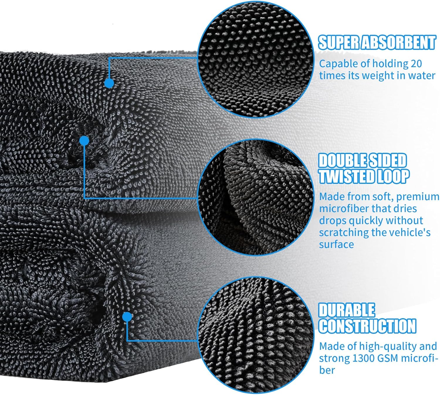 - Technological Innovation In Car Towels - This is not just any other type of microfiber, It is the ultimate car drying towel and car dryer for a reason. First, these cleaning rags use a special Twisted-Loop Technology to make it ultra absorbent. This twisted loop cloths technology allows for an increase in surface area by extending the length of each individual microfiber. This is a step up from normal towels.