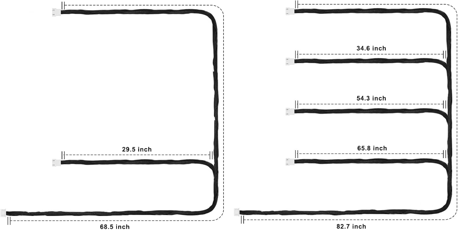 - 【Length of acrylic lighting car interior Extension Wire】 29.5 inch/68.5 inch(Only Extension cord*1)+ 82.7inch/65.8 inch/54.3 inch/34.6 inch(Only Extension cord*1) led light strip extension cable.