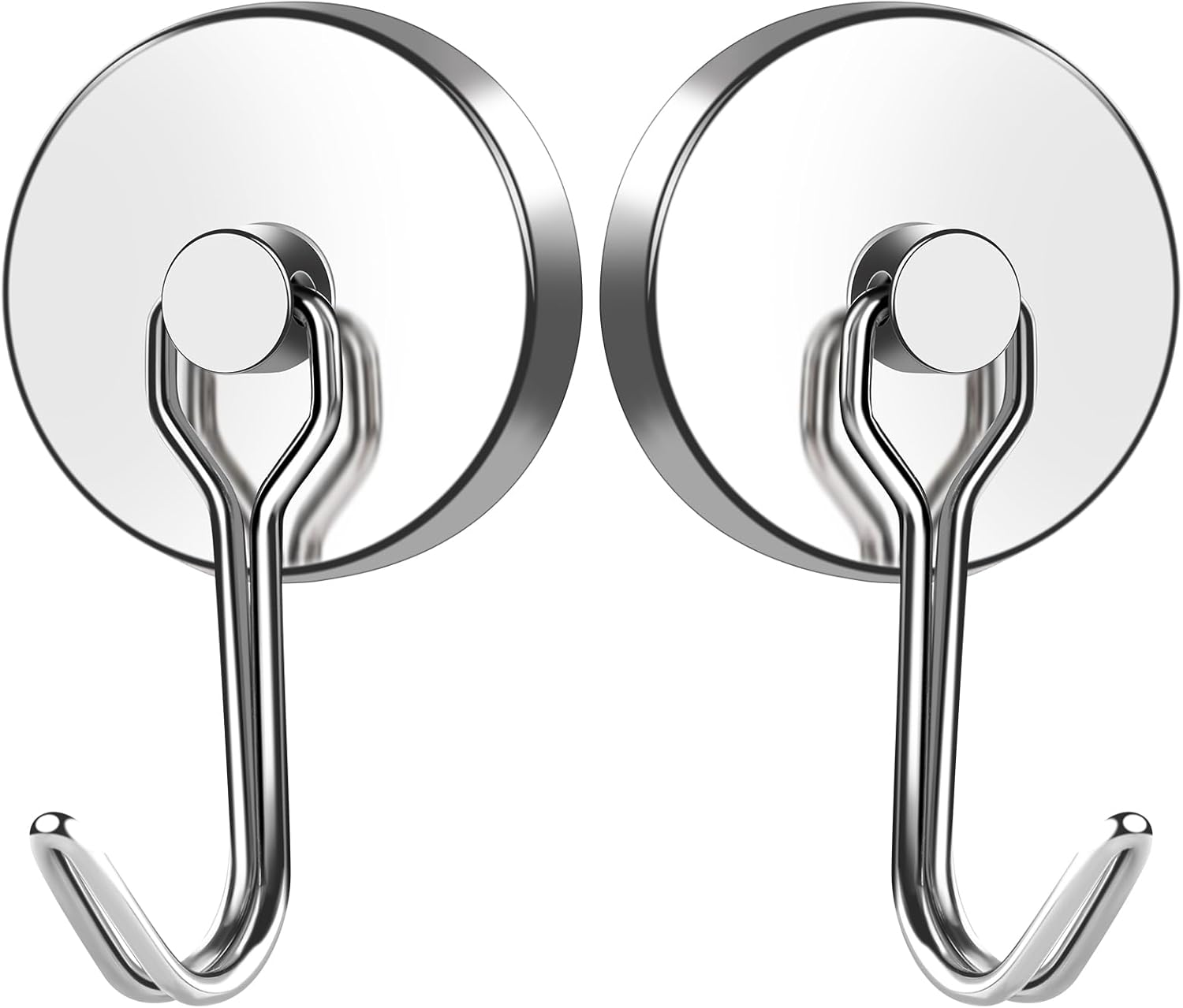 MIKEDE 110LB Magnetic Hooks, Neodymium Magnet Hooks for Hanging, Swivel Swing Magnetic Hook Heavy Duty, Strong Magnet with Hooks for Cruise, Kitchen, Camping, Door, Locker - 2 Pack
