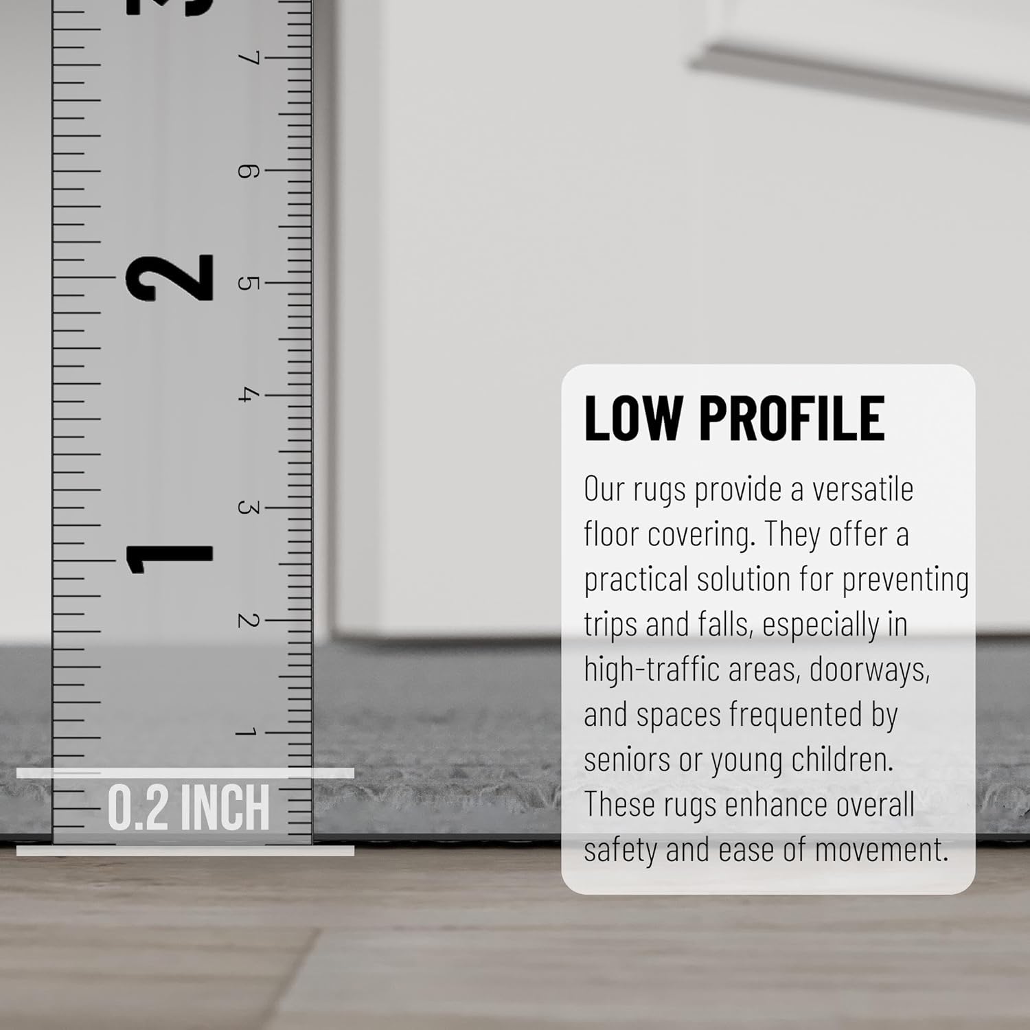 - [ULTRA THIN PILE]: A ultra thin pile thickness of 0.2 inches offers ideal functionality that is perfect for busy areas, underneath furniture, and in entryways as it will not obstruct doorways.