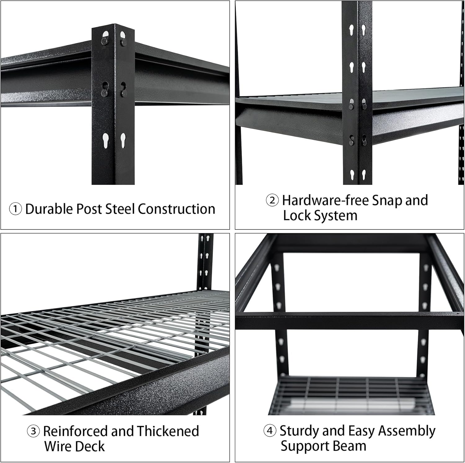- 【Durable & Efficient Metal Shelving】 Our metal storage shelves feature an anti-rust painting tech and premium powder coating to provide a smooth surface that is easy to clean and rust-proof. The upgraded structure of shelves eliminates the traditional diagonal cross bracing on the side frames, which adds 2.5 inches of usable width for more storage space, while still allowing for easy access to and from both sides of the shelves.