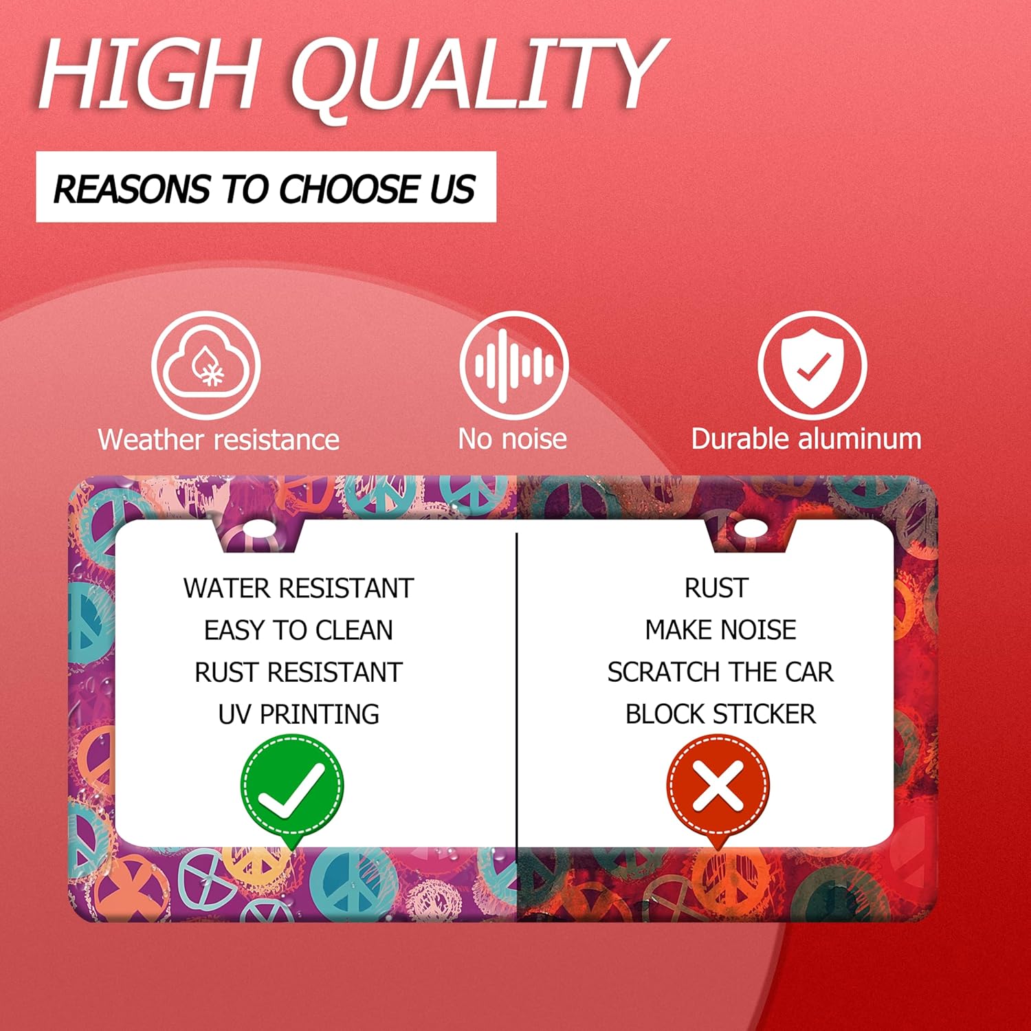 Groovy Hippie Peace Sign License Plate Frame Pink License Plate Frames Stainless Steel Accessories Cars Decor with 2 Holes and Screws Fits Standard US CA Vehicles Size 12.2 x 6 Inches