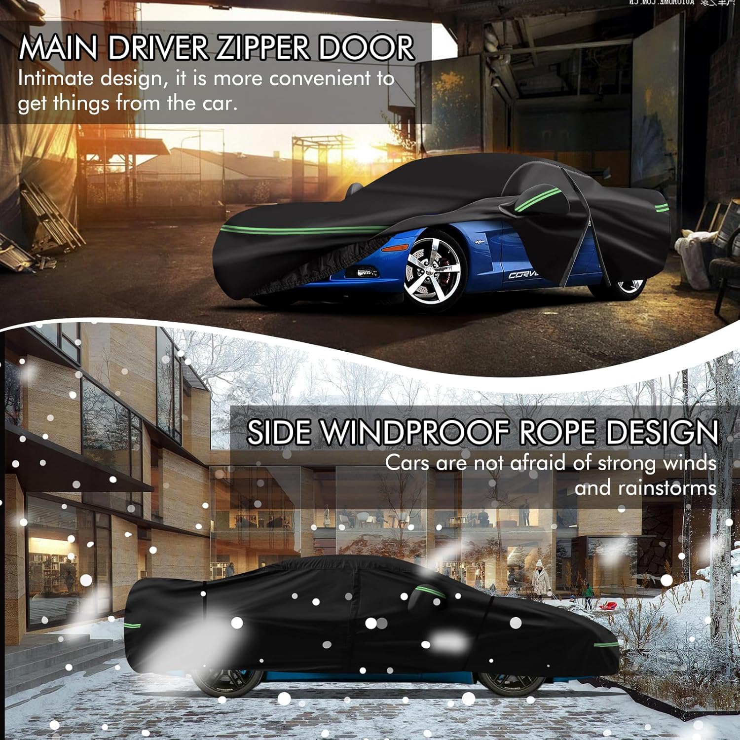 for Corvette 2005-2013 C6 Car Cover 210D Outdoor Waterproof UV Protection, with Cotton Layer, Zipper Door, Reflective Strip, Storage Bag, for Chevy C6