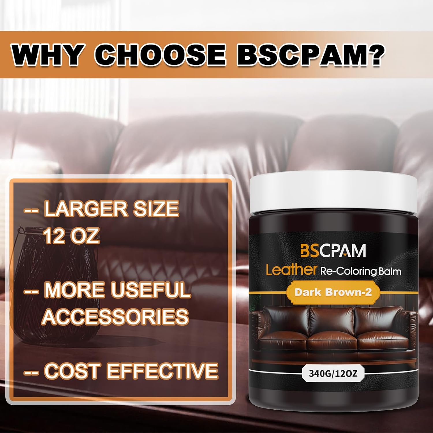 - Leather Recoloring Balm & Mink Oil 2 in 1 kit: BSCPAM Large Volume's Leather recoloring balm can restore fading color leather furniture surface to its former glory. Bring all the leather back to its original colour. and Polished leather with Mink oil, It makes the leather more shiny and lubricated, and also protects the surface of the leather, making the surface waterproof, anti-division and more durable.