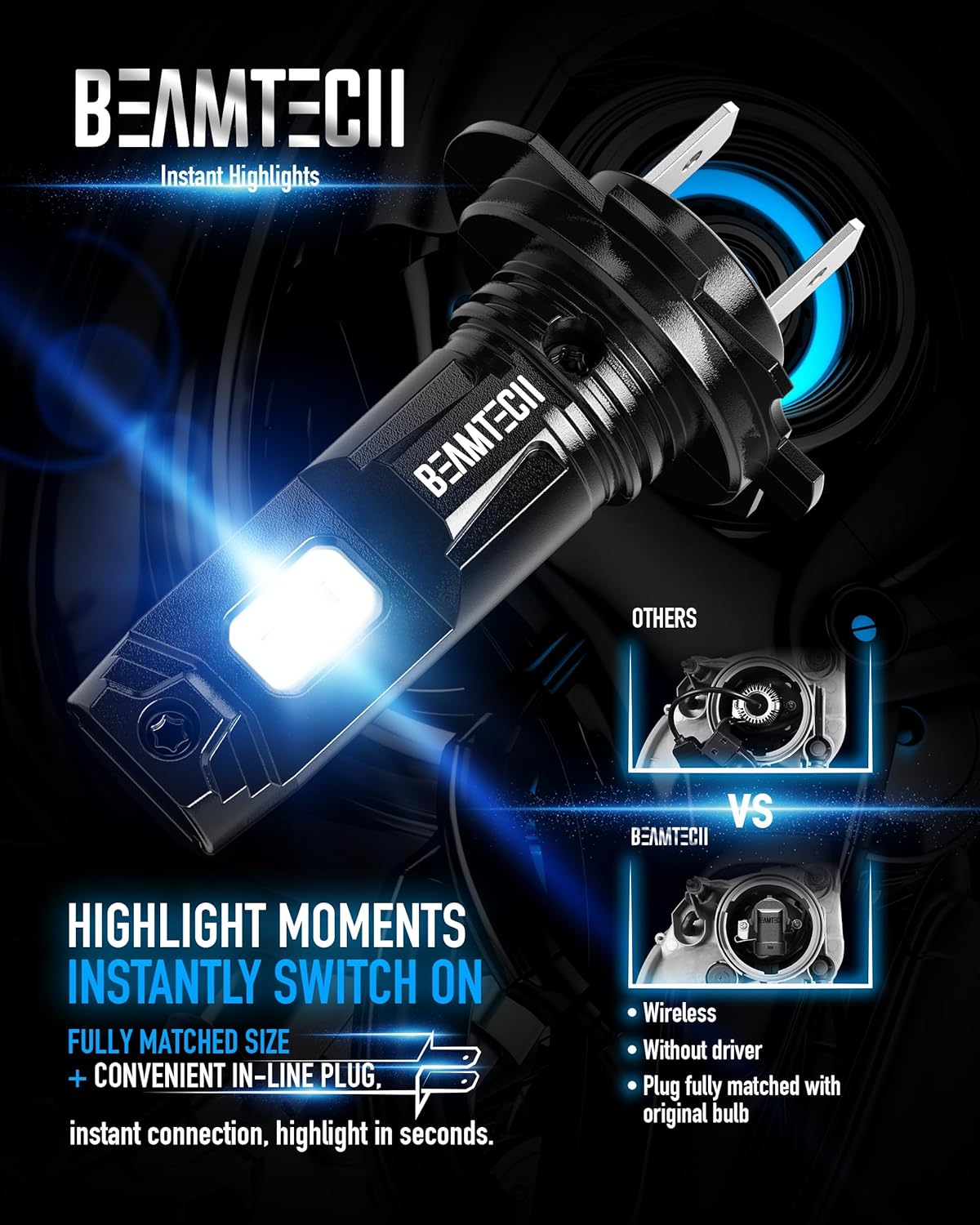 BEAMTECH H7 Fog Light Bulb Fog Light 6500K Xenon White Fanless In Line Pack Of 2