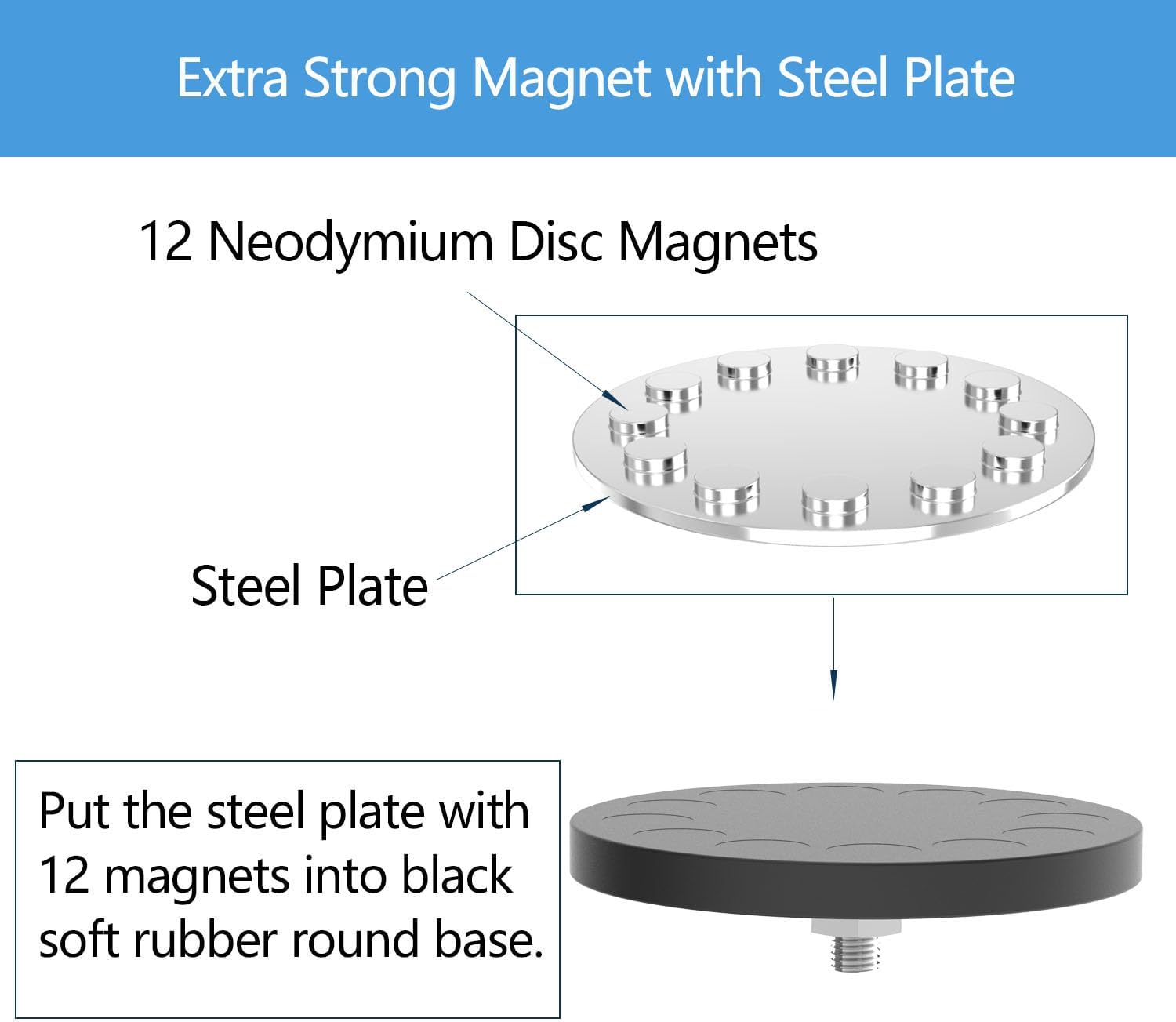 - š§²[Spacious Magnetic Organizers]: These neodymium magnet hooks includes a 3.46-inch diameter strong magnet base with threaded bar, nut, spacer, and a PVC coated hook. Our tests show they can securely hold various items like EV chargers, two-gallon water bottles, and an assortment of garage tools.