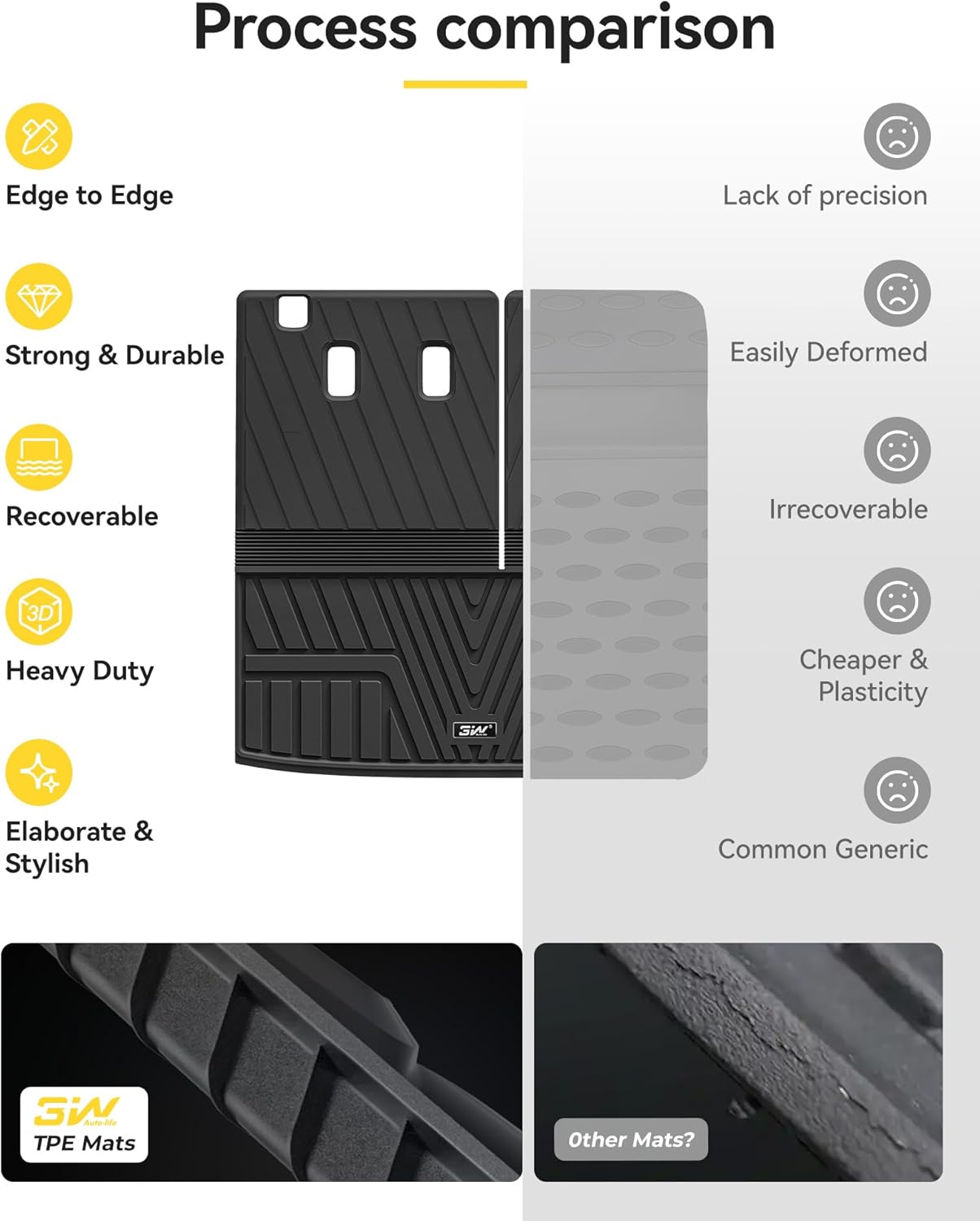 3W Cargo Liner Fit for Honda Pilot 2023-2025 TPE Custom Fit All Weather Honda Pilot Accessories 2023-2025 Odorless Anti-Slip Mats Trunk Mats Black