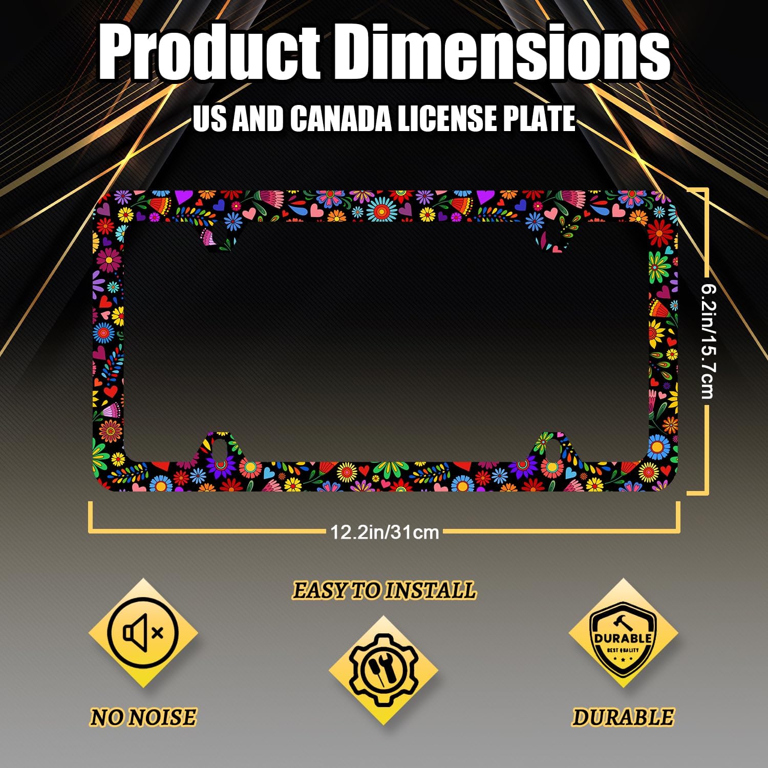 Abstract Flowers License Plate Frame Bright Colorful Art Floral License Plate Stainless Steel Flowers Car Accessory Funny License Plate Decoration Women Size 12.2" x 6.2" with Screws