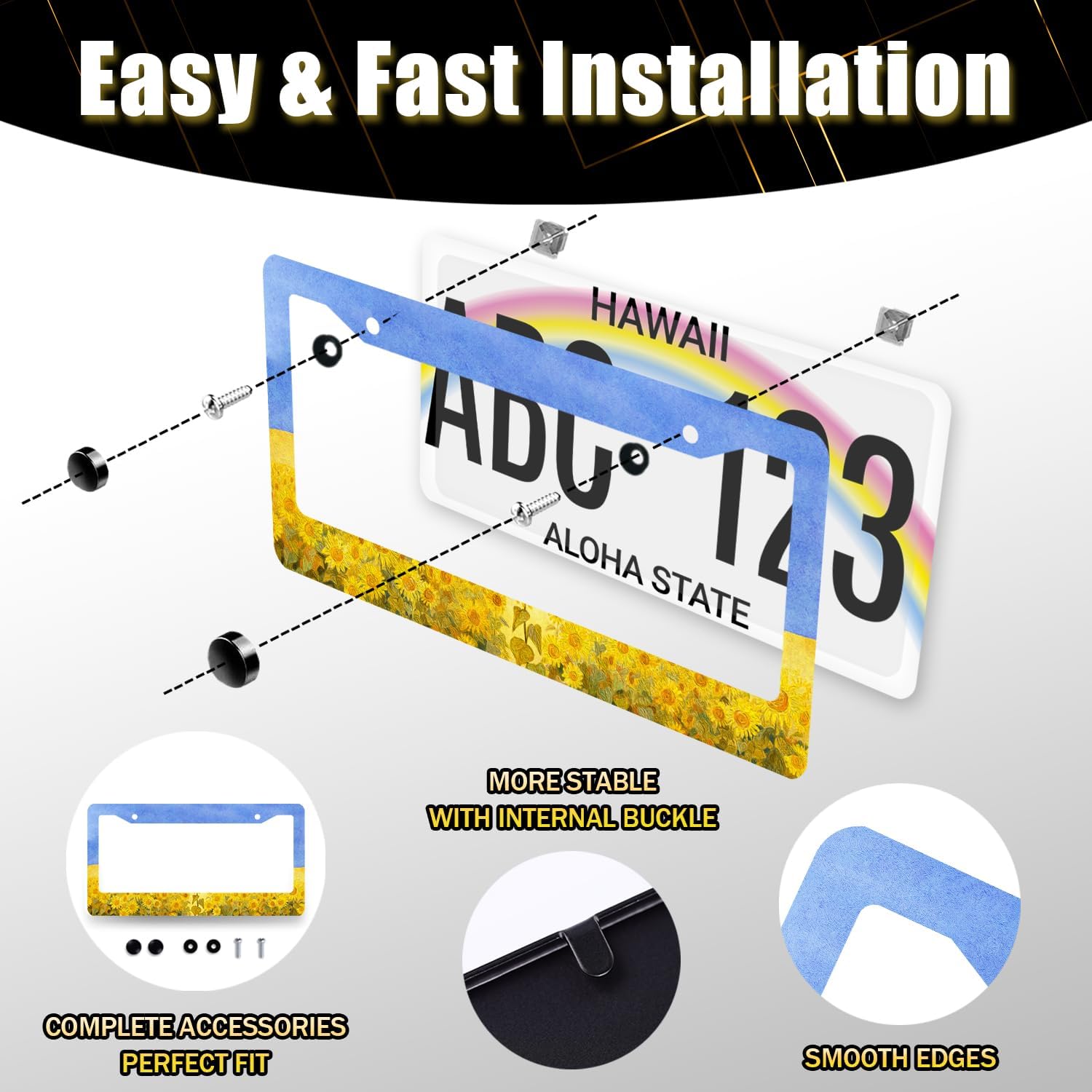 Sunflowers License Plate Frame Watercolor Yellow Floral License Plate Holder Colorful Stainless Steel Flowers Car Accessory Funny License Plate Decoration Size 12.2"x 6.2" with Screws