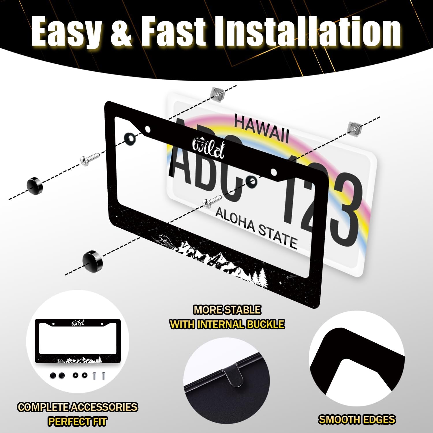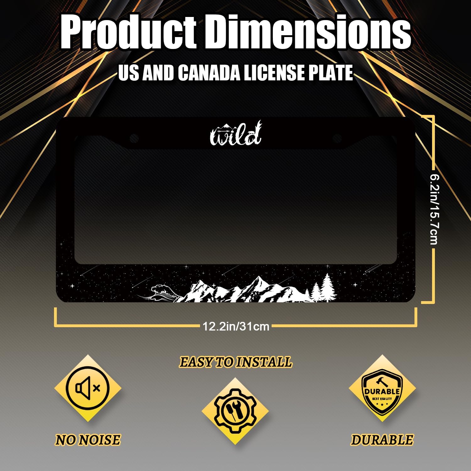 Mountains License Plate Frame Ocean Waves Forest Starry Sky License Plate Stainless Steel Mountain Car Accessory Funny License Plate Decoration Men Women Size 12.2" x 6.2" with Screw