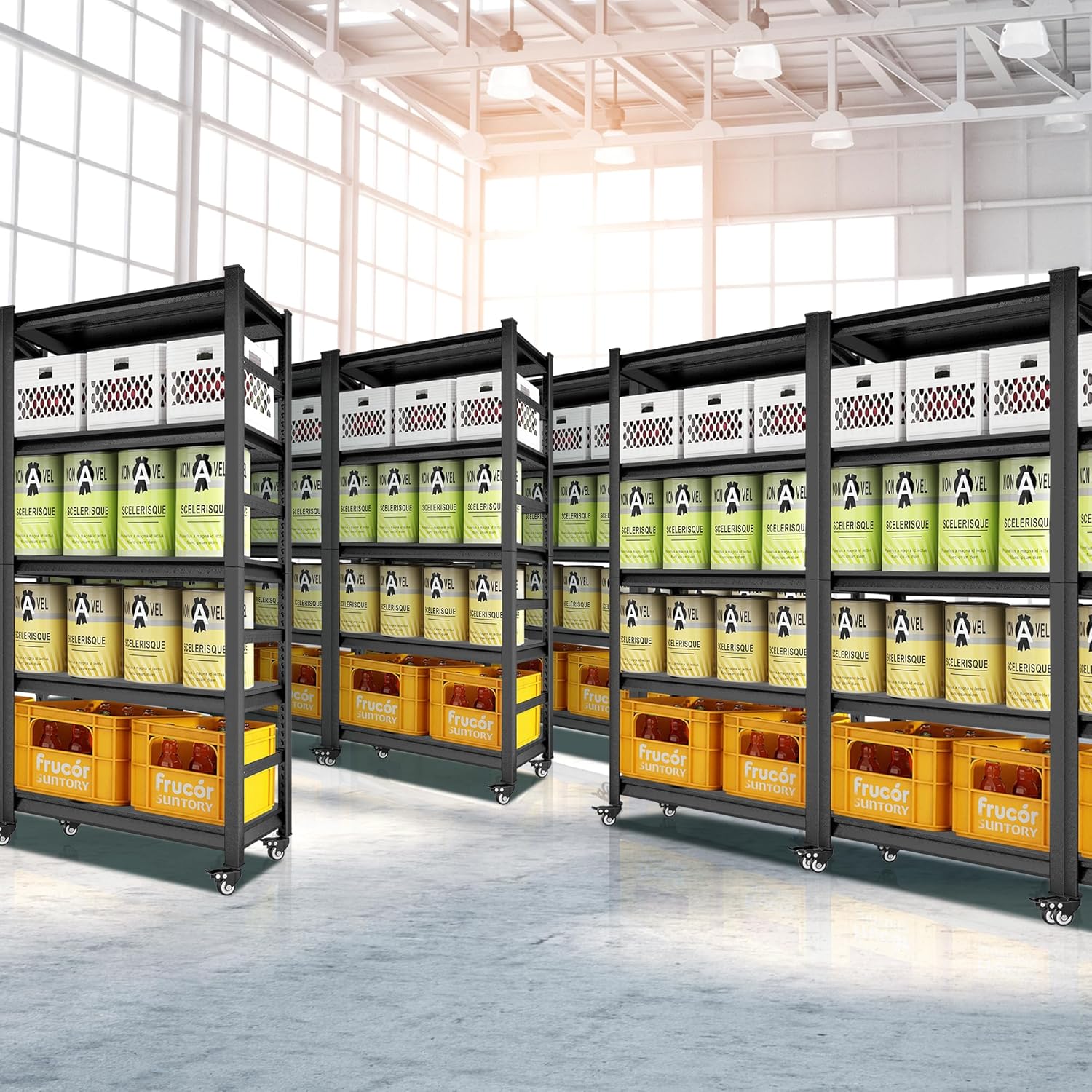 - ăGarage Shelf with Wheels & Protective Railsă: This kitchen storage shelf features four 360°swivel wheels with locking mechanisms, make moving heavier items on the shelf much easier. Wheels are lockable, removable. our shelving unit offers effortless mobility and stability when needed. Each shelf is equipped with protective rails on all sides, preventing items from falling off the sides and providing added security.