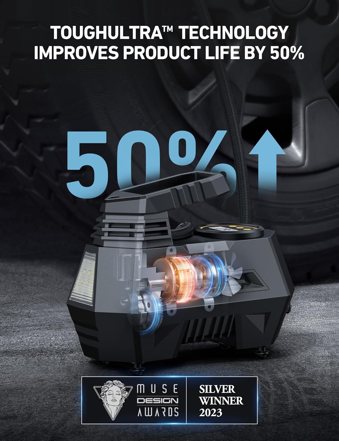 - TOUGHULTRA TECHNOLOGY, ENHANCED DURABILITY: This tire inflator is manufactured with AstroAI’s unique ToughUltra technology, so all of its core parts, including its cylinder, motor gears, and connection rod, are built using a powder metallurgy integrated molding technique. This revolutionary manufacturing process greatly enhances the inflator’s durability and increases its service life by 50%.