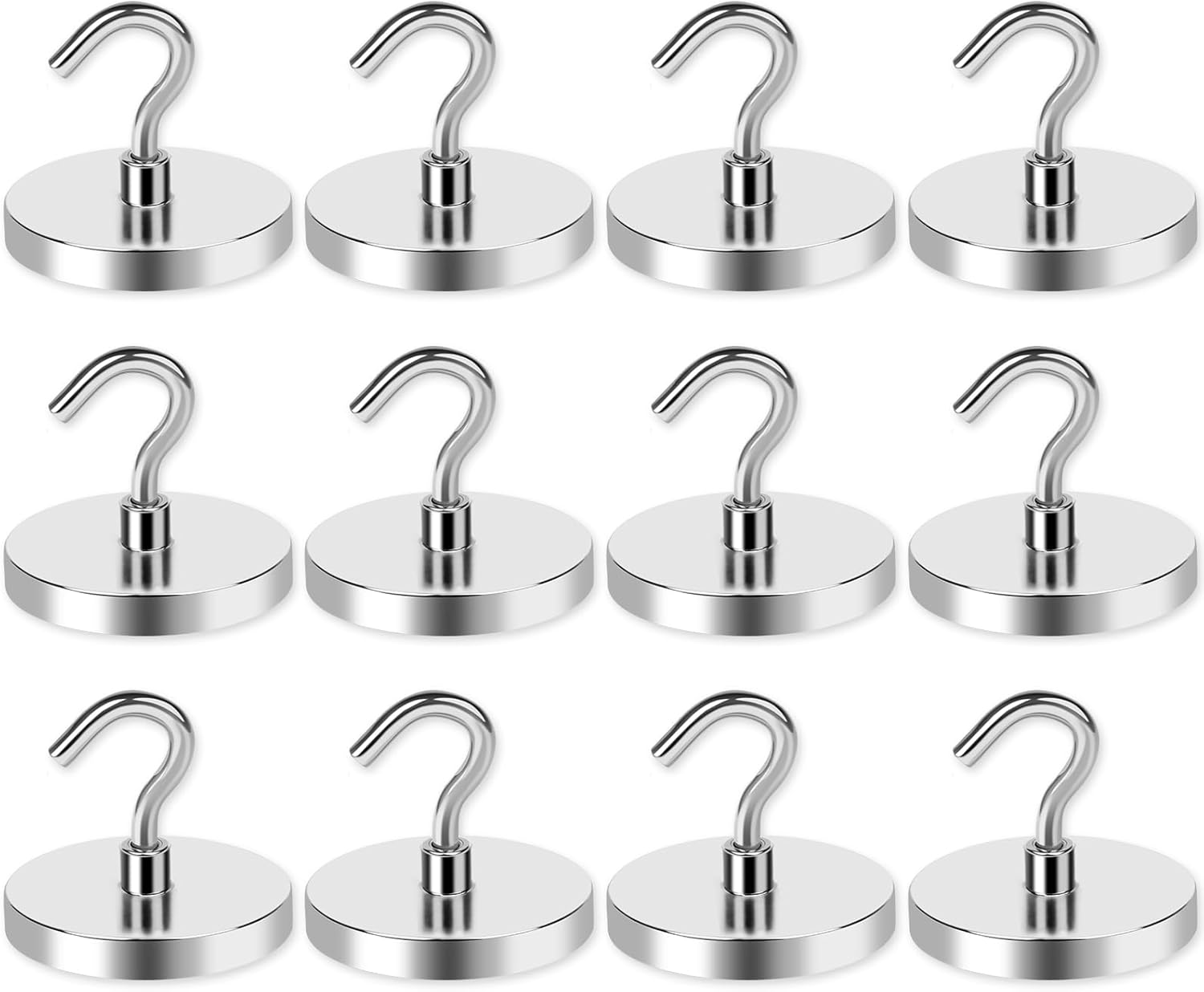 LOVIMAG Magnetic Hooks Heavy Duty, Super Stong Magnetic Hooks Neodymium Magnet Hooks for Cruise, Rare Earth Magnets with Hooks for Magnetic Hanger,Toolbox,Storage,Hanging-12 Pack