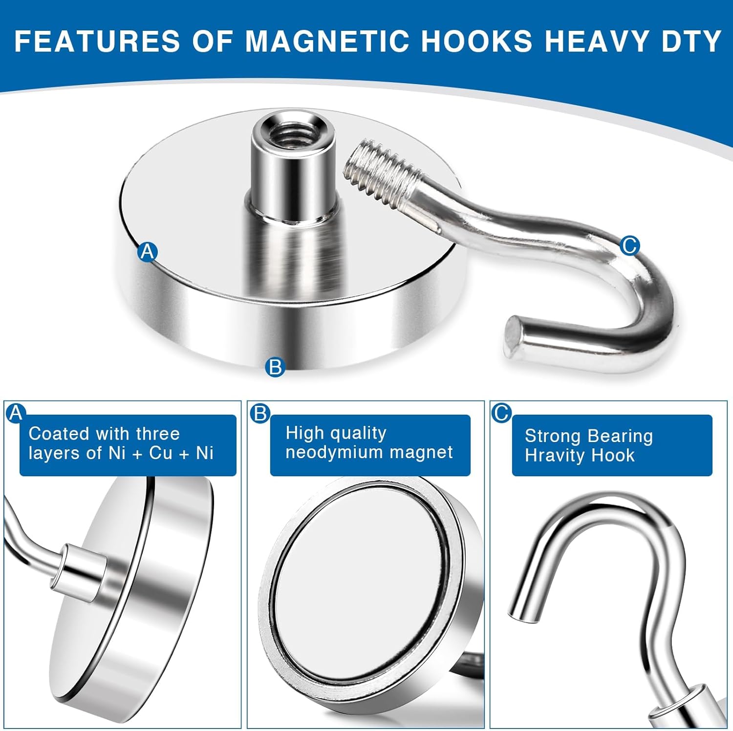 - 【HIGH QUALITY COATING】Heavy duty hooks are coated with triple layer of Ni+ Cu+ Ni, which greatly enhances magnetic hooks for refrigerator corrosion resistance. The layer of metal hooks for hanging not only provides a shiny and rust resistant surface, but also helps prevent the magnets with hooks from breaking or cracking.