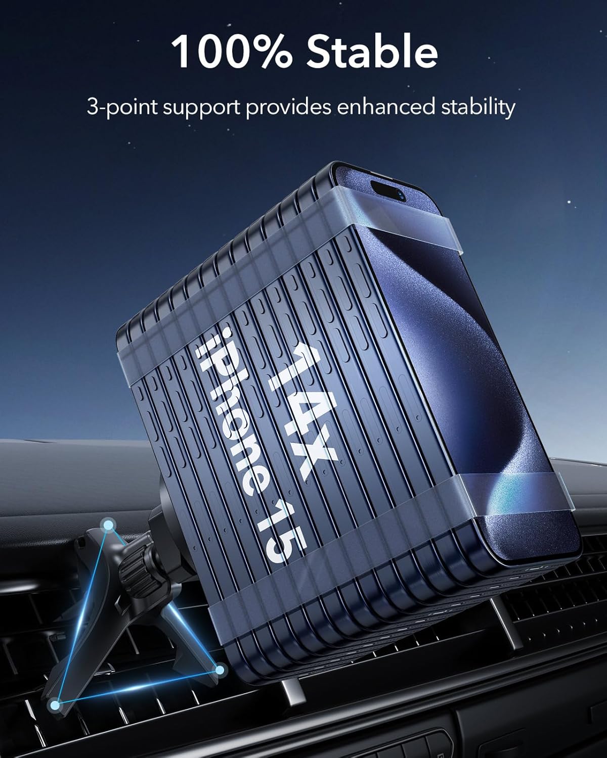 - Unshakeable Stability: unique design hooks onto vents and locks firmly in place while mounting arms further enhance stability, ensuring peace of mind and a steady screen over even the bumpiest roads