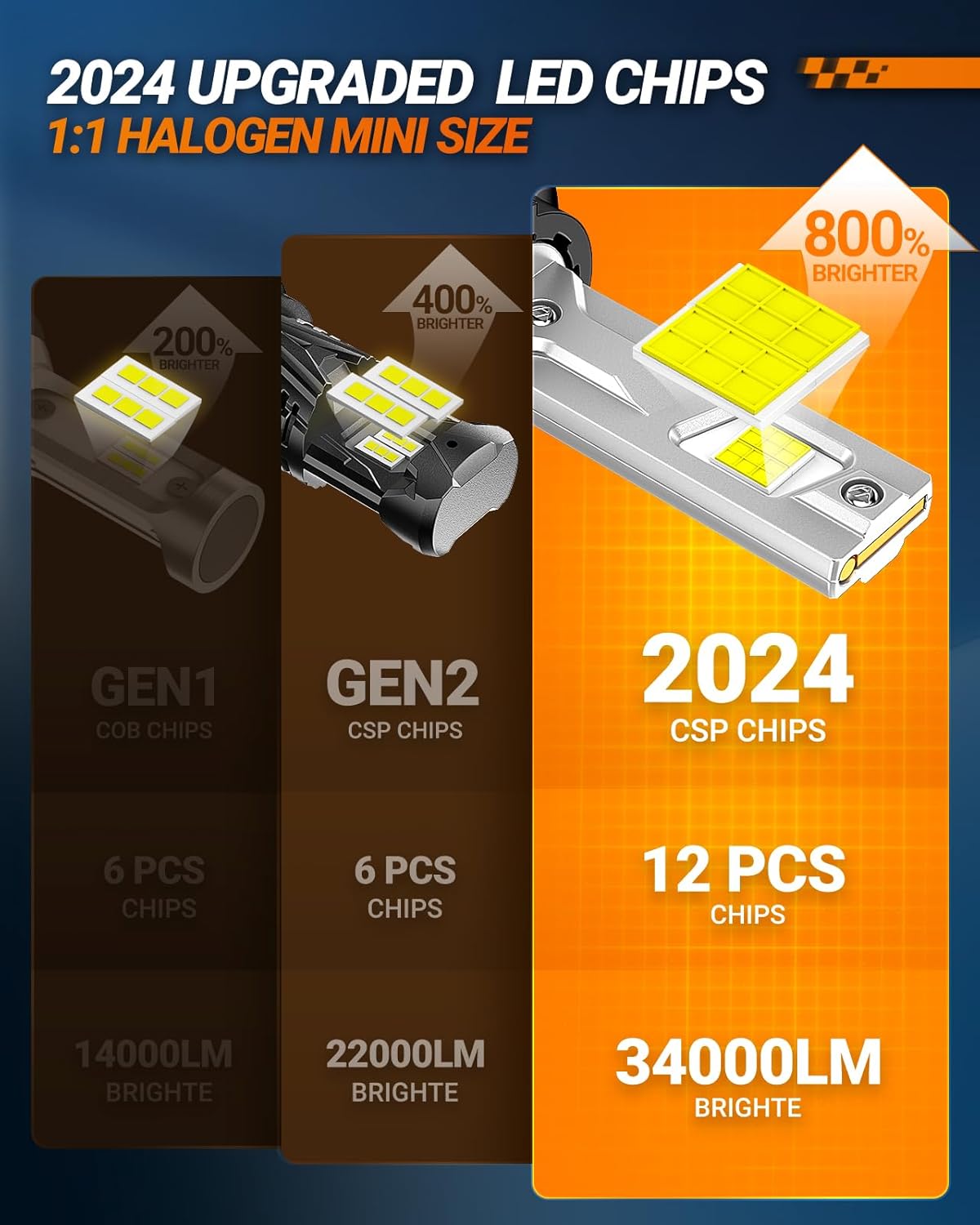 - Decrease Risk: SEALIGHT X4I 9007 bulbs equipped with upgraded 12 CSP chips, 55000LM brightness and 6500K cool white. Driving more safely and comfortably at night. Illuminating your way home