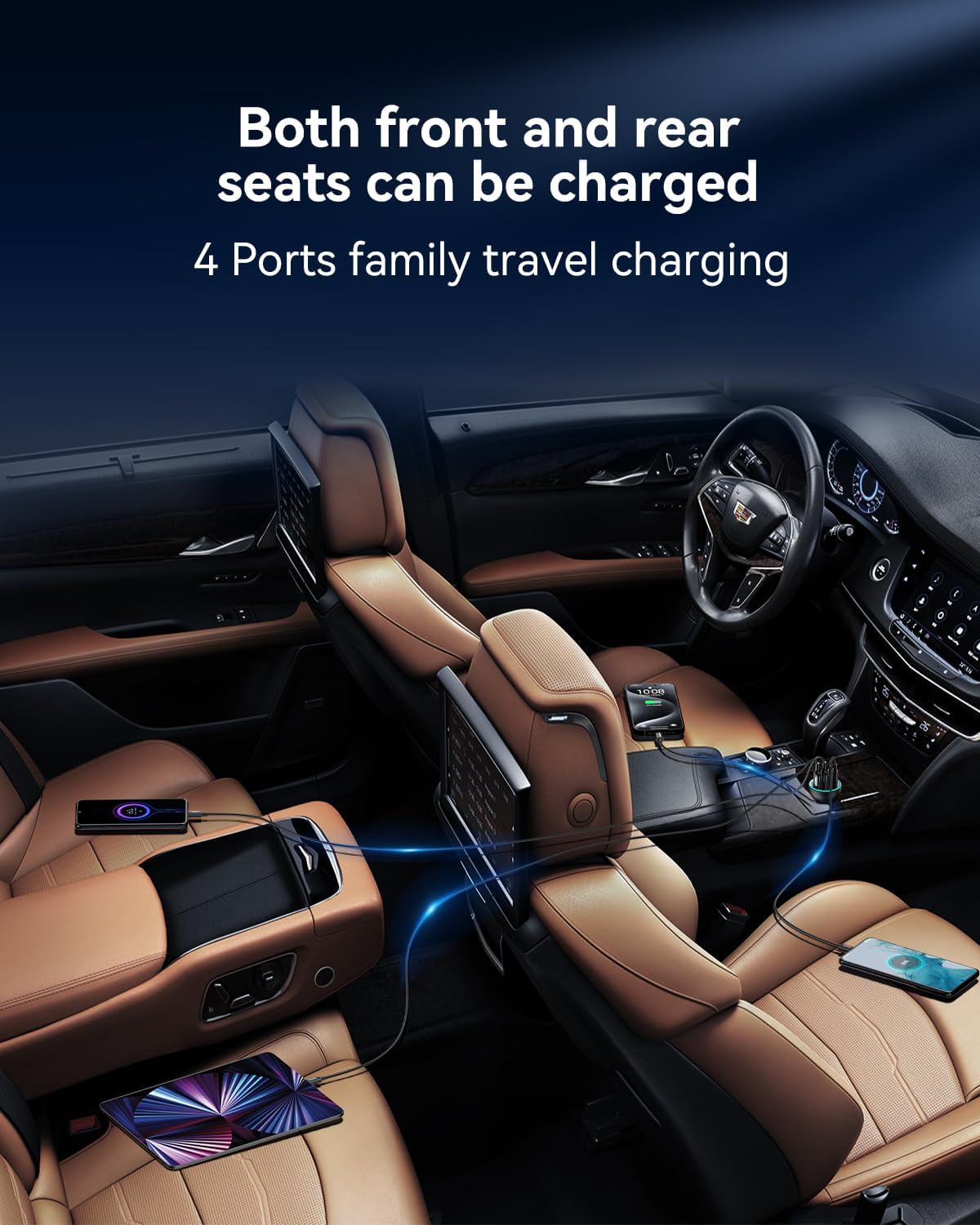 - Special Feature : PD35W & QC 30W 4-Port usb c car charger, a must for family travel