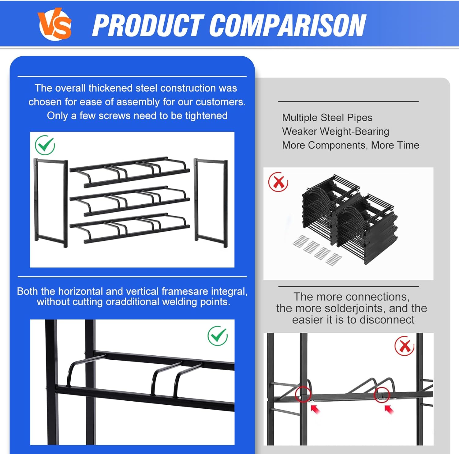 - 【Safety and Long-Lasting】Curved from a single piece of premium steel pipe, our water bottle rack minimizes the need for welding and joining. That's how we achieved such a sturdy build, a higher weight-bearing capacity and an extended product lifespan.