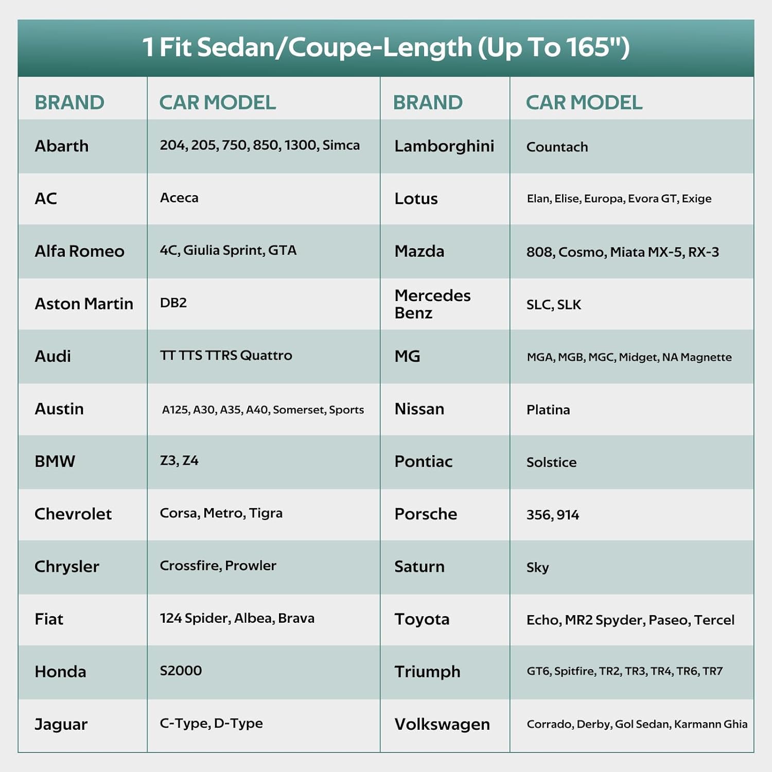 - ăCHOOSE THE RIGHT MODELă: Molebt coupe car cover fits Sedan & Coupe up to 165 inch. For example BMW Z3,Honda S2000, Mazda Miata/MX-5, Toyota MR2 Spyder/Tercel, Saturn Sky, Pontiac Solstice, Chrysler Crossfire, Volkswagen Cabrio, etc.