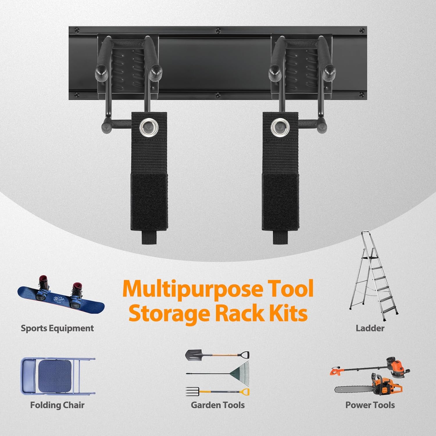 - MULTI-FUNCTION GARAGE TOOL ORGANIZER: This versatile wall mount tool hanger set offers the ultimate solution for your wall storage needs. Perfect for organizing a variety of items including garden tools, brooms, hoses, yard tools, pole cutters, hockey sticks, ski gear, and more. Keep all your gear neatly arranged, tidy, and easily accessible with this efficient system.