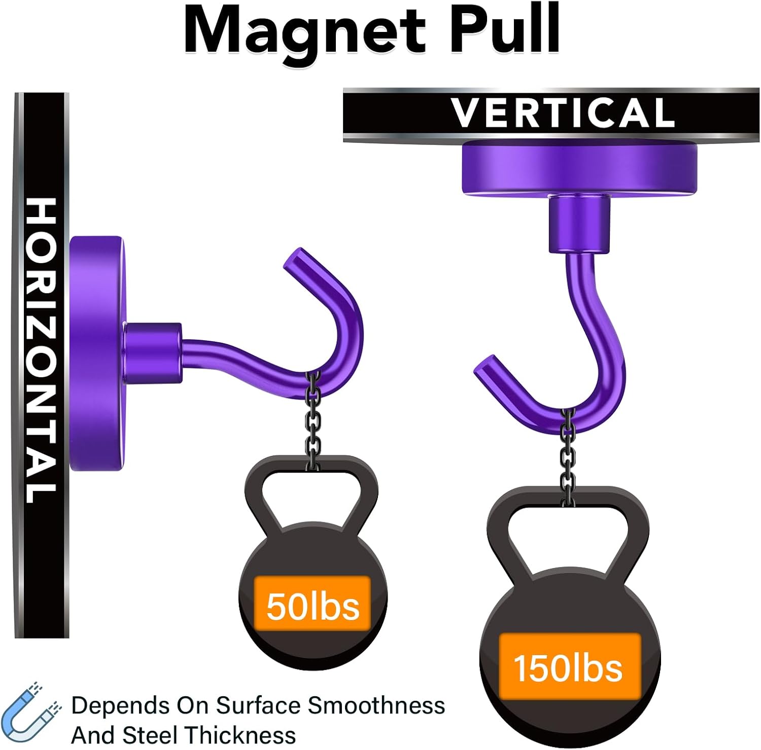 MIKEDE Magnetic Hooks,150LB Heavy Duty Magnets with Hook for Fridge, Strong Magnets Neodymium Industrial Hooks for Hanging, Magnetic Hanger for Toolbox, Cruise(Purple, 10 Pack)