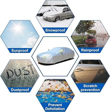 - ăUpgraded Materială--KouKou multi-layer covers adopt newest heavy duty and secure materials. It is 100% Waterproof, great for rainproof snowproof in winter. Highly reflective aluminum fabric is good at sunproof, anti-Uv and keeps cool in summer. The inner lining is soft cotton that would protect car paint better.