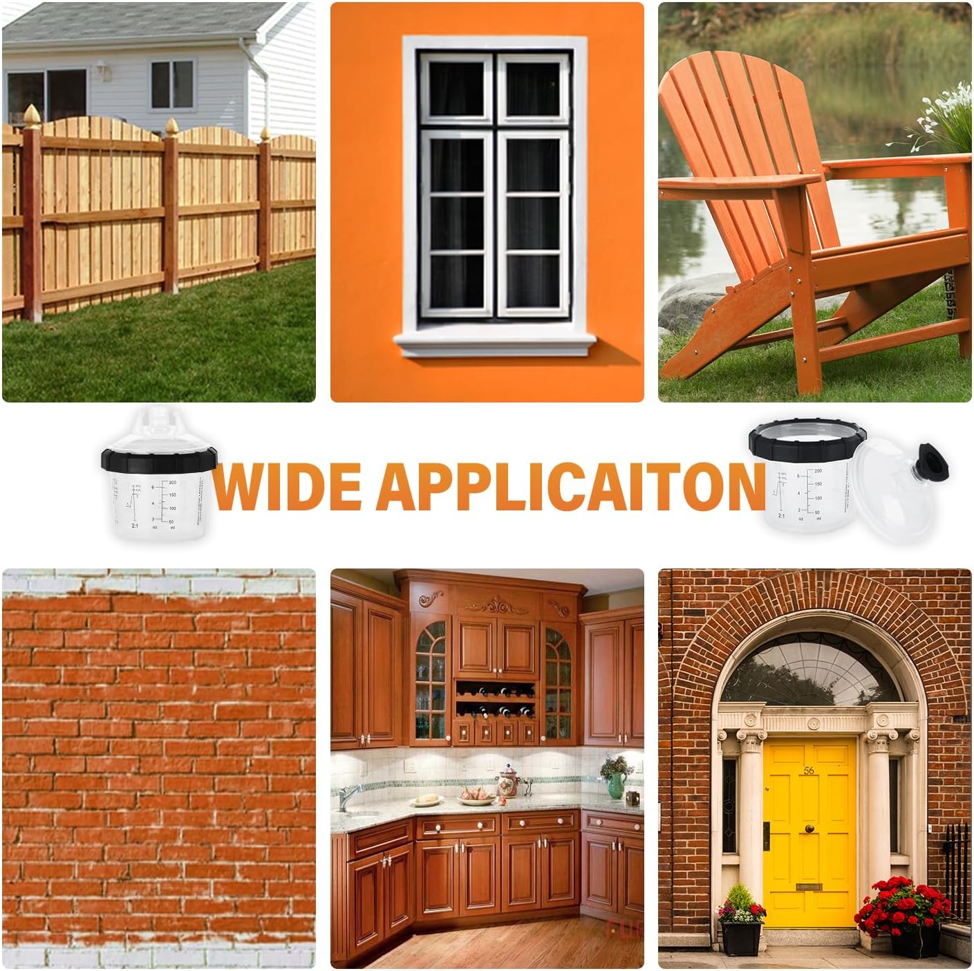 - Wide Application: The auto paint mixing cups are ideal for automotive paints and varnishes, as well as stains, sealants, gel coats, varnishes, polyurethanes, enamels