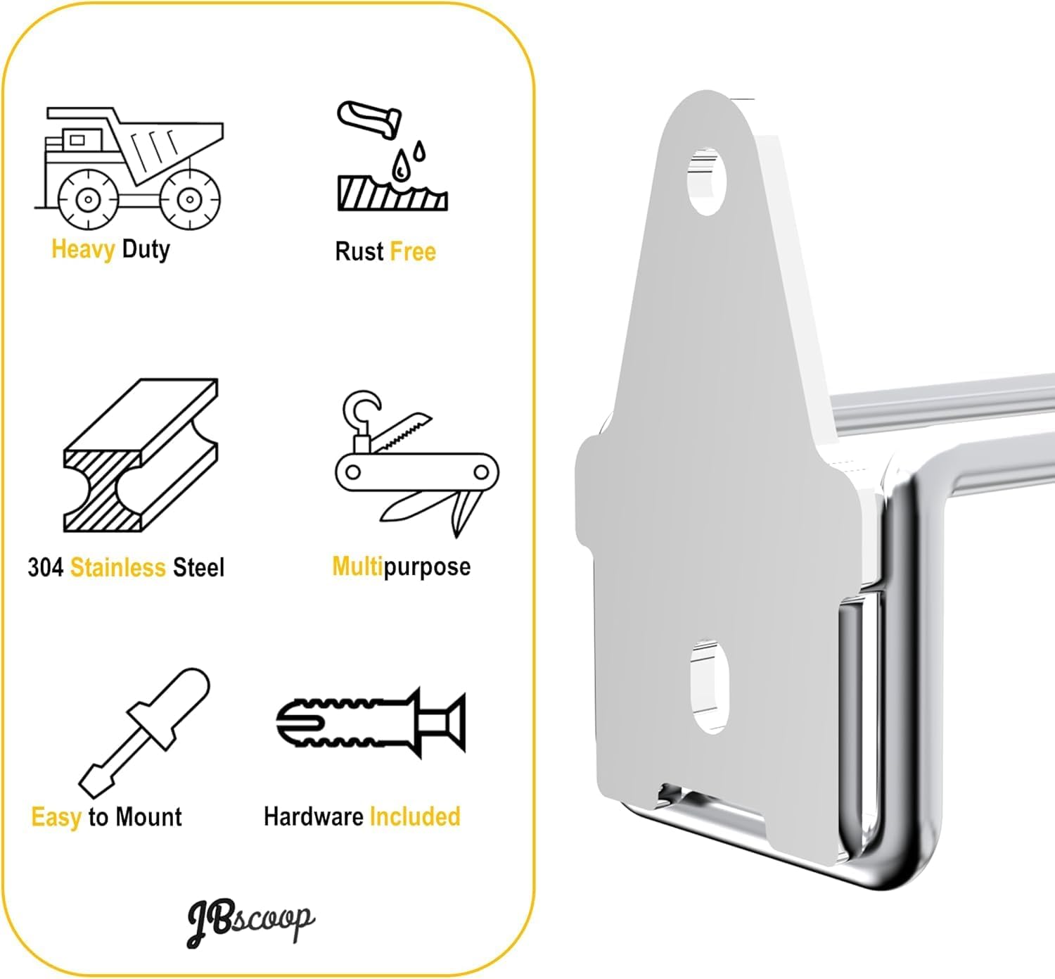 JBscoop Stainless Steel 304 Garage Hooks, Heavy Duty Organizer & Wall Mount Hanger Rack for Tools, Equipment, and More, Rust-Resistant & Durable