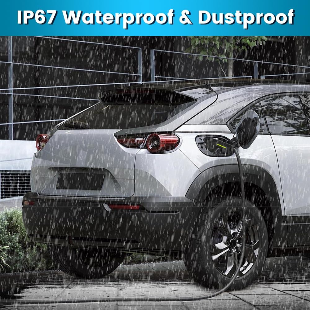 - 【Safer & Reliable Charger】 Safety is a top priority, which is why this charger is equipped with a LED indicator on the control box. This indicator displays the charging status of your EV, alerting you immediately to any potential issues. Additionally, the charger incorporates triple protection functions, including Leakag Protection, Overcharge Protection, and Under Voltage Protection, ensuring a safe and reliable charging experience.