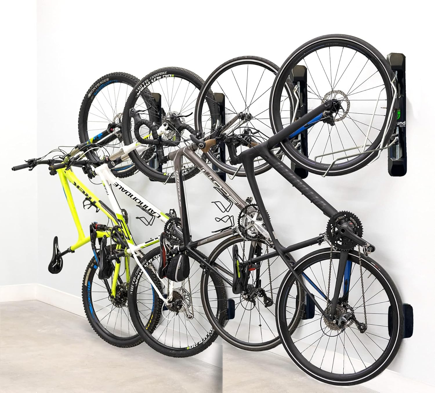 - Space-Saving Pivot Feature: Unlike traditional bike stands, hooks, or pulley systems, our racks boast a unique pivot feature. The rack seamlessly slides between the tire, cradling only the tire and saving valuable space.