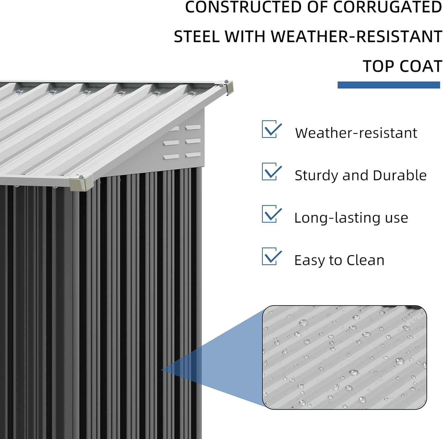 - Durable Construction: Constructed with high-quality materials, this storage shed is built to withstand various weather conditions, ensuring long-lasting durability and protection for your tools.