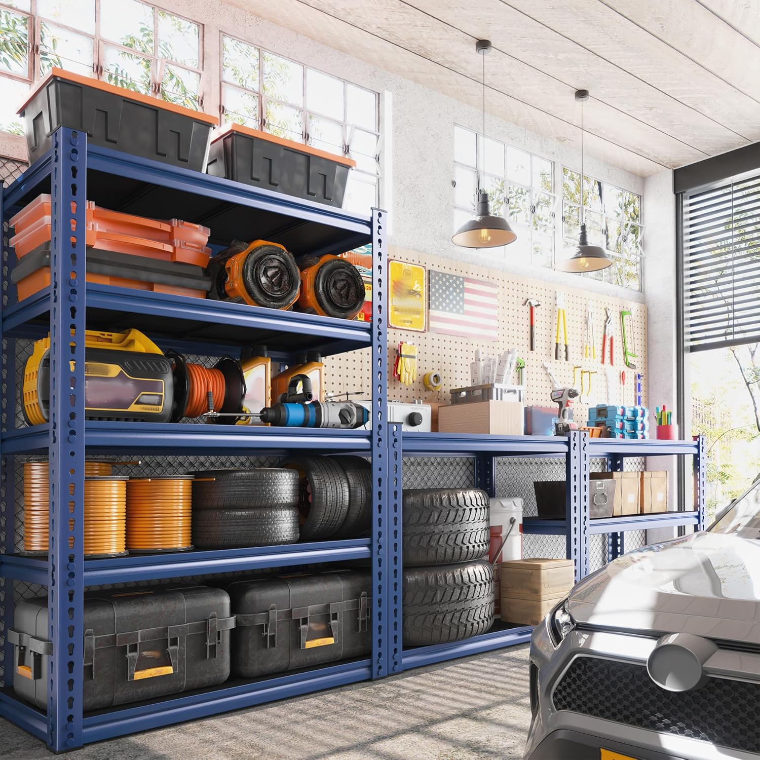 REIBII Garage Shelving 72" H Storage Shelves Sturdy Metal Shelves Heavy Duty 5 Tier Metal Shelving for Kitchen Closet Basement Warehouse 72" H x 32" W x 17.1" D Blue
