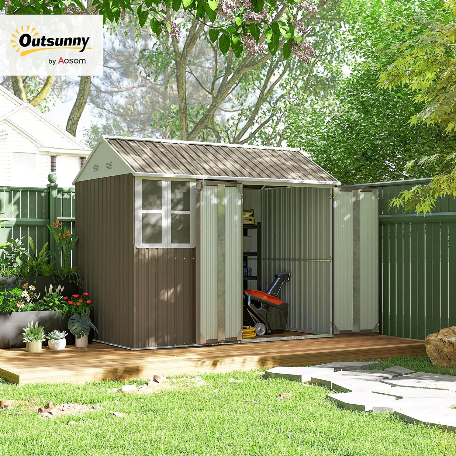 Outsunny 8' x 5.5' Outdoor Storage Shed, Metal Garden Shed with Window & Double Lockable Door, Outdoor Tool Shed Storage with Sloped Roof for Backyard, Patio, Garage, Lawn, Gray