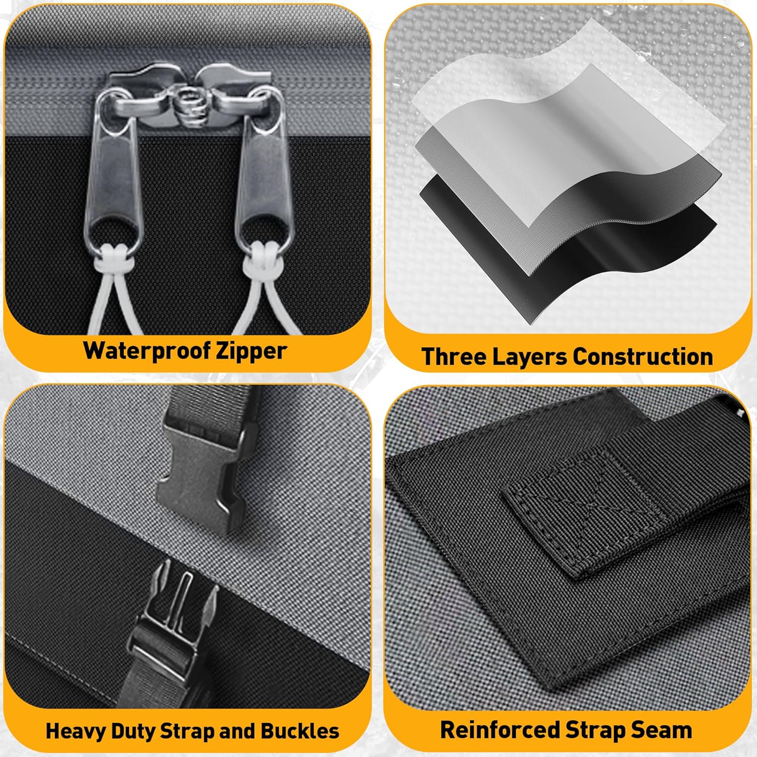 - 25 ft³ CARGO BAG: Ultra rugged fully waterproof 600D rooftop cargo carrier bag with water repellent double coating surface and liner. Always keeping your belongings dry in all weather conditions. 59"(L) x 47.2"(W) x 15.7"(H) extraordinary capacity helps to maximize cargo storage and provides extra 187 gallon cargo storage space for your vehicle.