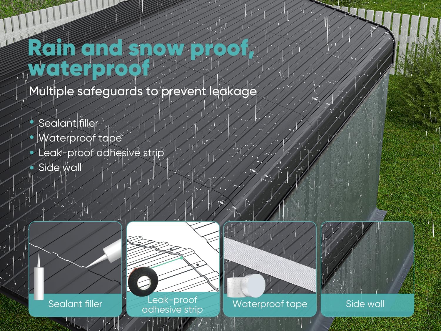 - Free Accessories for Complete Protection: This 12x20 metal carport comes with a set of valuable free accessories, including durable PE material side walls for extra enclosure and protection from the elements. Also included are waterproof tape, sealing caulk, and waterproof sealing strips—all designed to prevent leaks and ensure your car port stays dry and well-protected.