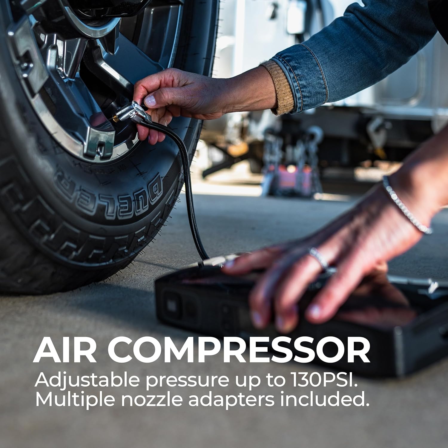 - HALO Bolt Ultimate 2.0 Jump Starter, Air Compressor, Power Bank & Flood Light: Get the upper hand on inconvenient dead car batteries and flat tires. Four products in one compact, easy to carry design. Not only will it jump start your vehicle, but it can inflate your tires, charge USB and AC-powered devices, and it has an integrated floodlight, so you’re better prepared for emergency roadside situations or power outages
