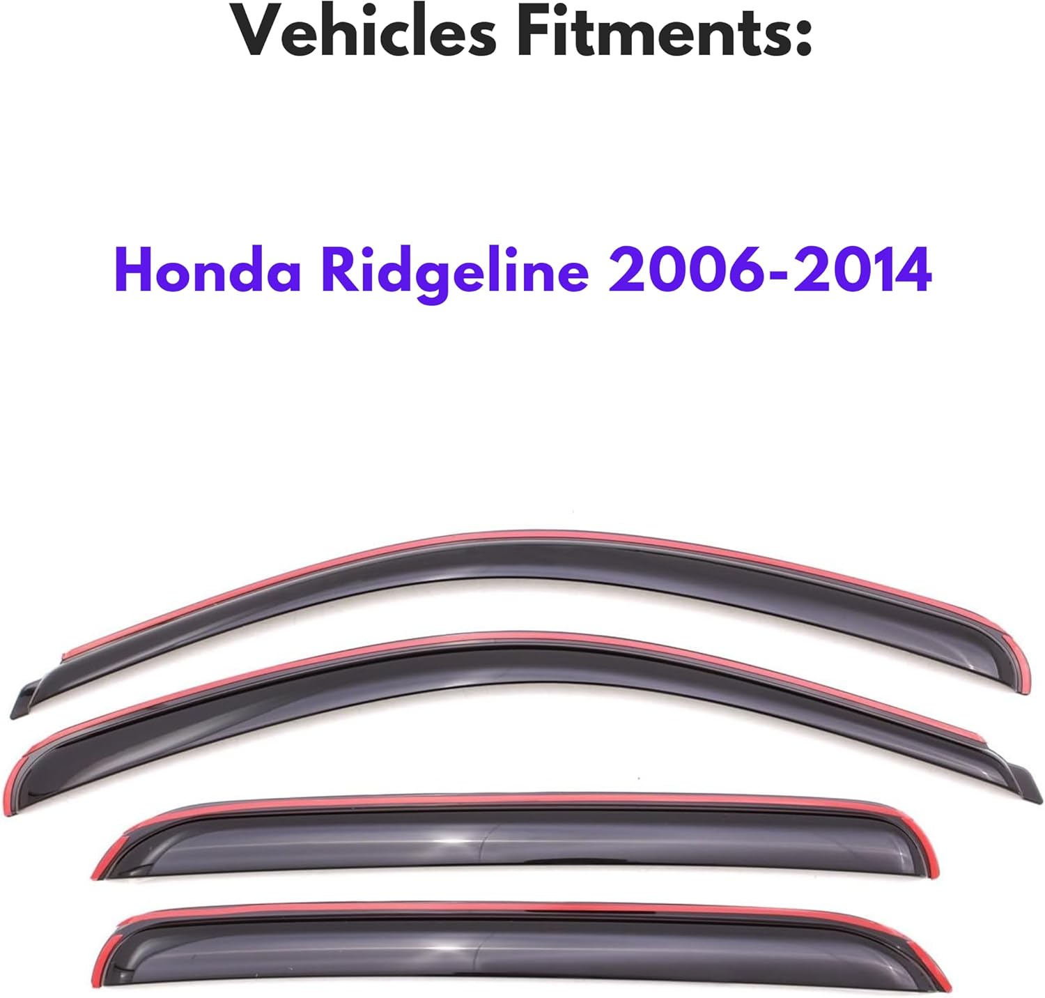 KPY Window Visor Compatible with Honda Ridgeline 2006-2014, 4PC Rain Guard Side Window Vent Deflectors in-Channel Style, 2006 2007 2008 2009 2010 2011 2012 2013 2014